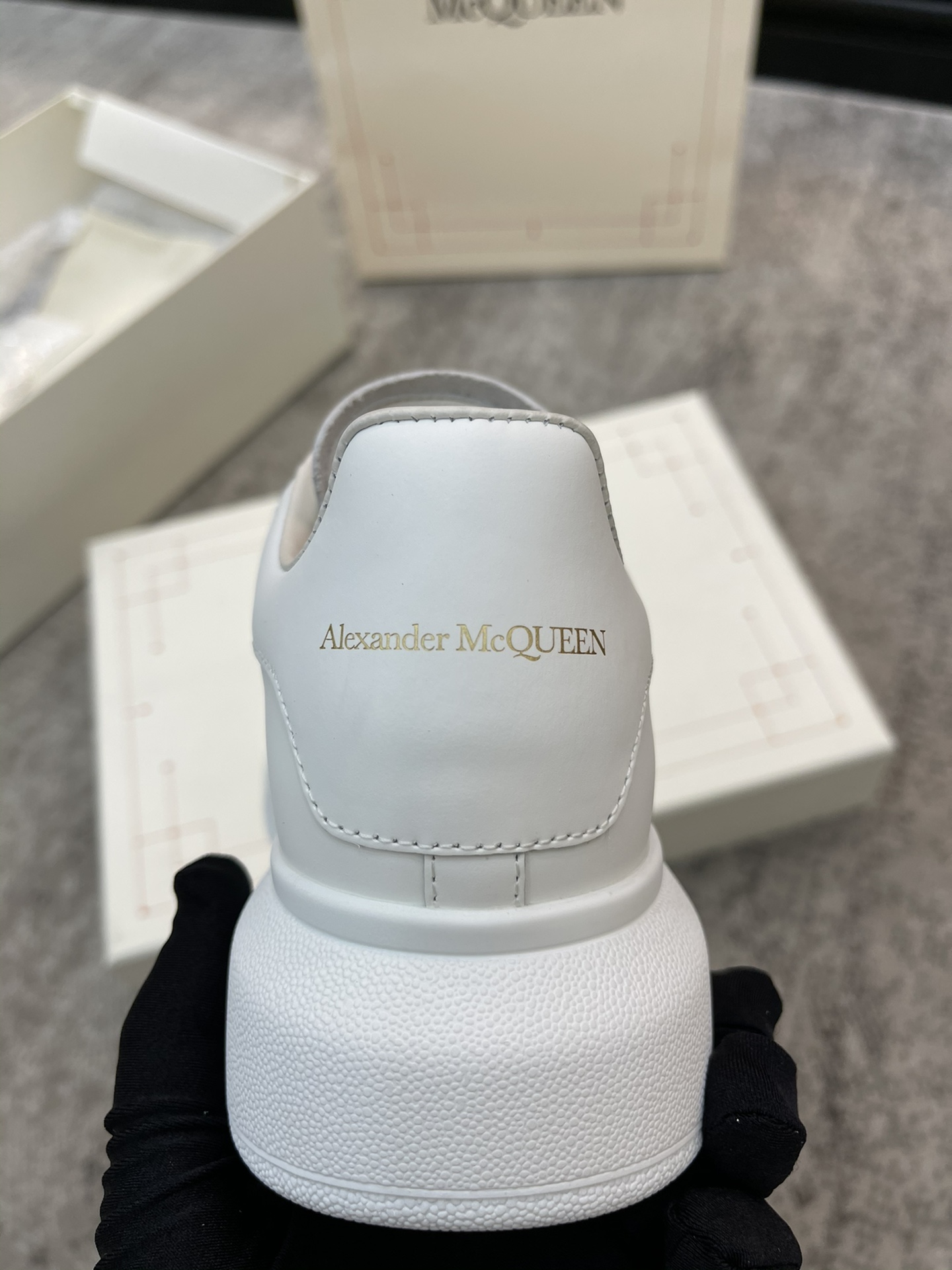 ?? McQueen 's all-white rear with gold letters, gilding has never been surpassed