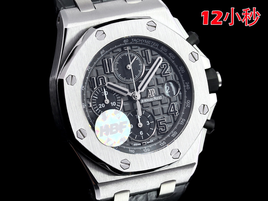 ?????? Audemars Piguet Royal Oak Offshore Series 26238: The top piece eliminates the embarrassment of a fake at first glance "On the basis of the original JF factory, we have been dedicated to research and development to break through the barriers" breaking the original blockade technology, the original exclusive chronograph model can be loose "to fit the wrist to the greatest extent, greatly improving the comfort of wearing and eliminating the embarrassment of a fake at first glance. HBF factory truly considers from the perspective of every watch enthusiast who likes the hand ?? 2. With the latest CNC-level polishing technology, every Angle of the entire case is perfectly processed, 3. Each hexagonal screw is on the same plane as the watch frame, without the slightest protrusion or depression, truly embodying what top-notch replica art is. The dial is set against the backdrop of Audemars Piguet's classic large checkered pattern, with a clearly layered grid arrangement that has been perfectly polished, vividly showcasing the craftsmanship of the artisans. The mirror surface is equipped with double-sided sapphire lenses and a natural fluororubber leather strap. The movement adopts the original 3126 chronograph movement, featuring twelve seconds, 12-hour chronograph at 6 o 'clock and 30-minute chronograph at 9 o 'clock, perfectly restoring all the functions of the original. Each watch undergoes manual QC to ensure the stability of the movement, truly achieving impeccable quality