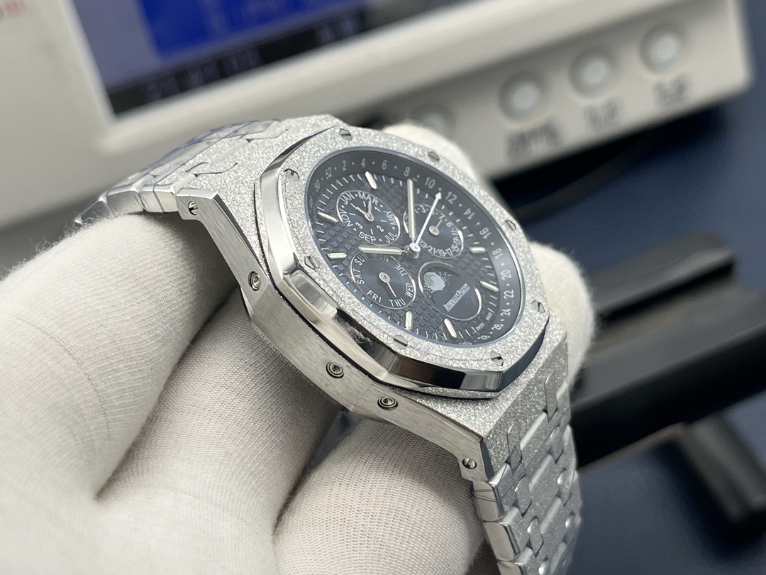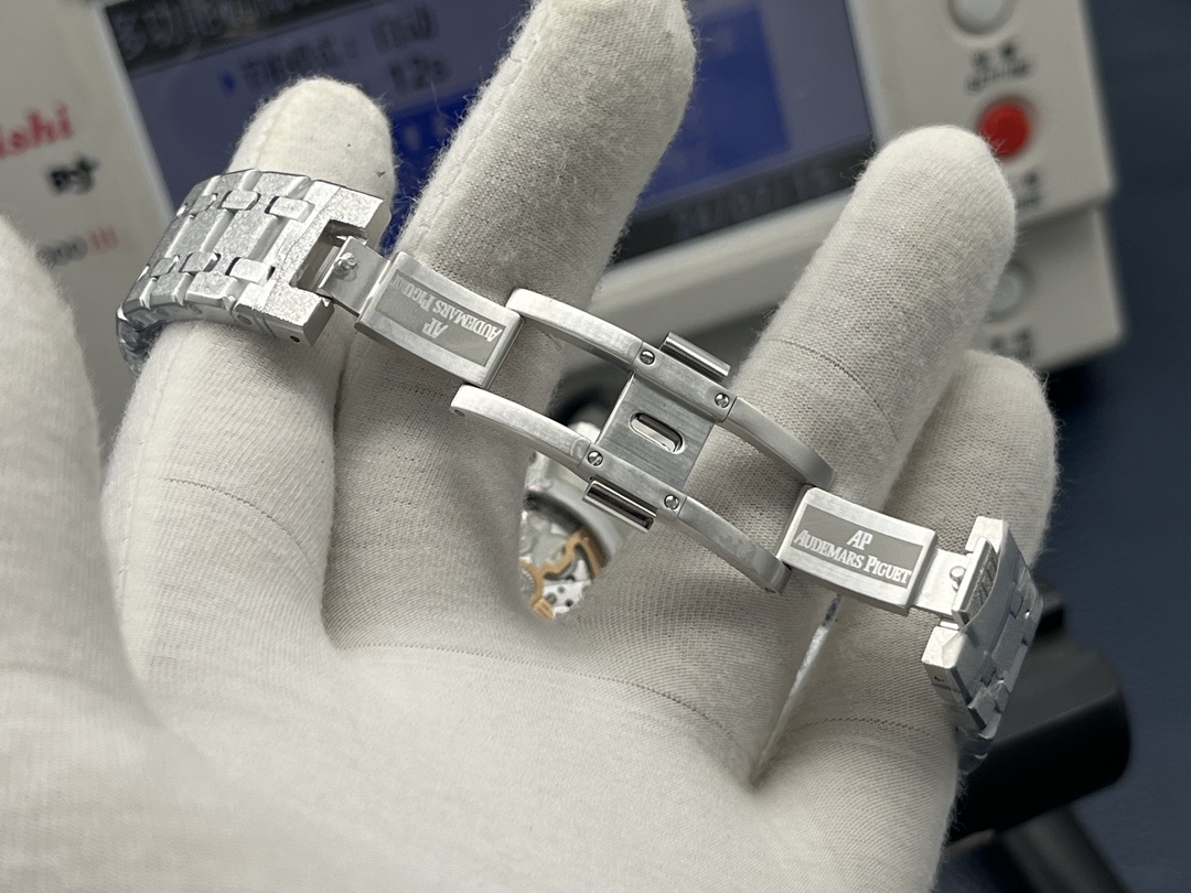 AP Audemars Piguet Royal Oak Frost Gold Version! 1 ? 41MM in diameter, King of steel "Audemars Piguet 26574 series (Frost Gold custom Edition), steel band watch the most IMPORTANT BAND! 2 ?TW factory mold the original strap to make the fine brushed texture of the strap and not sharp to cut the hand, the thickness and joints of the strap are the same as the original foot, with meticulous attention to detail. The strap of the watch features a movement buffer design at the connection point of the crown that is consistent with the genuine product, making it more comfortable to wear and closer to the wrist! 3 ? The design and texture of the clasp and the engraving of the clasp are exactly the same as the original. TW factory restores the original literal, workmanship and color details. Put together with the original without any flaw! 4 ? The movement is the soul of the whole watch and the key to distinguishing authenticity, a perfect copy of the original Cal.5134 movement, accurate timekeeping, details the center axis of the hands is solid center axis, consistent with the original, the hands are polished so that the hands have no burrs! 5 ? The sapphire mirror glass is treated with double-sided high transparency for better clarity. The overall Angle perfectly reflects the wire drawing process, a fusion of quality and beauty! TW Factory meticulously crafted. Welcome to appreciate!