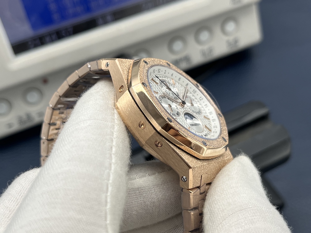 AP Audemars Piguet Royal Oak Frost Gold Version! 1 ? 41MM in diameter, King of steel "Audemars Piguet 26574 series (Frost Gold custom Edition), steel band watch the most IMPORTANT BAND! 2 ?TW factory mold the original strap to make the fine brushed texture of the strap and not sharp to cut the hand, the thickness and joints of the strap are the same as the original foot, with meticulous attention to detail. The strap of the watch features a movement buffer design at the connection point of the crown that is consistent with the genuine product, making it more comfortable to wear and closer to the wrist! 3 ? The design and texture of the clasp and the engraving of the clasp are exactly the same as the original. TW factory restores the original literal, workmanship and color details. Put together with the original without any flaw! 4 ? The movement is the soul of the whole watch and the key to distinguishing authenticity, a perfect copy of the original Cal.5134 movement, accurate timekeeping, details the center axis of the hands is solid center axis, consistent with the original, the hands are polished so that the hands have no burrs! 5 ? The sapphire mirror glass is treated with double-sided high transparency for better clarity. The overall Angle perfectly reflects the wire drawing process, a fusion of quality and beauty! TW Factory meticulously crafted. Welcome to appreciate!