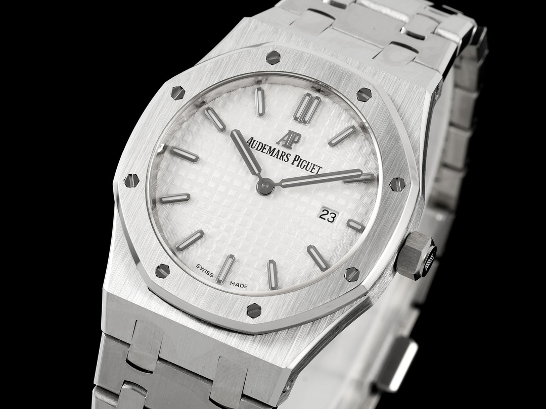 AUDEMARS PIGUET Royal Oak Series 67651OR Ladies' Quartz Watch ~ Shining debut! Goddess versatile style, sparkling and charming! The genuine product purchased through the APP is disassembled and mold-made. The entire process is CNC polished, and the pattern is checked and adjusted multiple times, with distinct edges and corners. The case diameter is 33MM. The multi-faceted bezel precisely fits the case. The bezel is fixed to the case with hexagonal screws (the bezel opening is set with exquisite Swarovski diamonds, dazzling and brilliant). The bracelet links are exquisitely and neatly arranged. The links have undergone hundreds of meticulous polishing processes, presenting a perfect texture. The folding clasp is easy to open and close and convenient to wear. The lugs of the watch are curved, which can ensure a better fit between the watch and the wrist. The dial is engraved with the "Grande Tapisserie" large checkered pattern decoration, paired with fluorescent three-dimensional hour markers and Royal oak hands. The wide hands and hour markers make reading the time simple and clear. The date display window at the three o 'clock position is shown in Arabic numerals. The wristwatch has a sealed case back, on which the English name of the Royal Oak series, "Royal Oak", is engraved. It is equipped with a Swiss F04111 quartz movement inside. Accurate timekeeping! APP production, making goddesses also very royal!