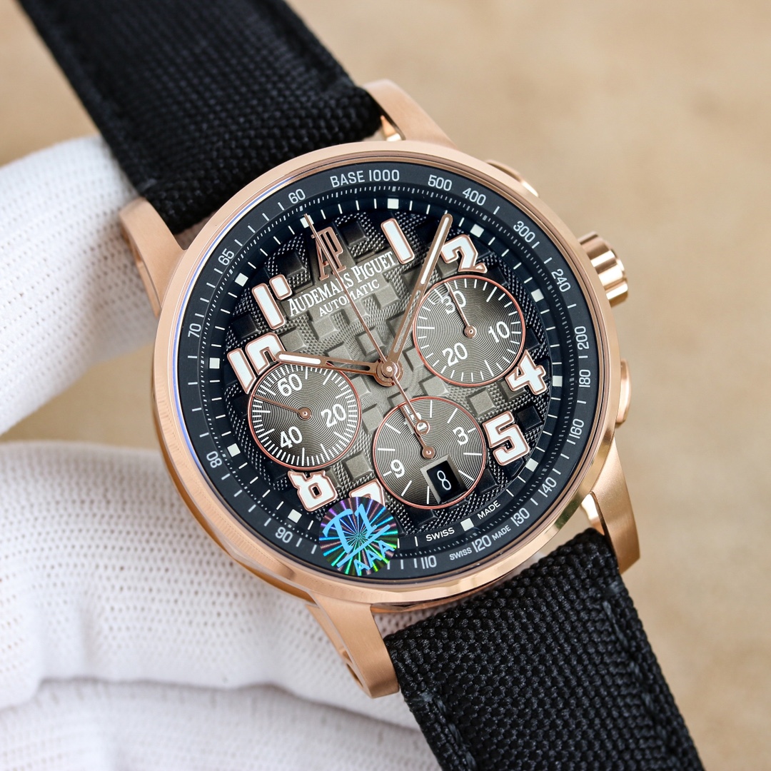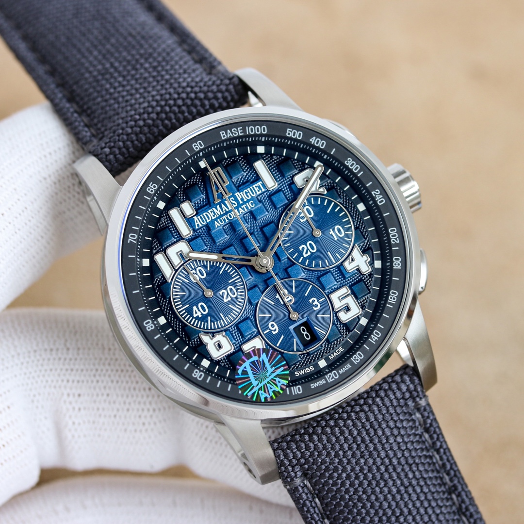 APF Audemars Piguet -AP, CODE11.59 Automatic Chronograph Series 1? Material: 316L stainless steel 2? Movement: Equipped with a stable 7750 movement, modified original Calibre44013? The glass mirror is made of anti-glare crystal sapphire 4? The strap is made of imported Italian calfskin and canvas leather 5? The clasp is a practical original pin buckle 5? Water resistance: 10 degrees water resistance, can dive 300 meters 6? Dimensions: 41mm