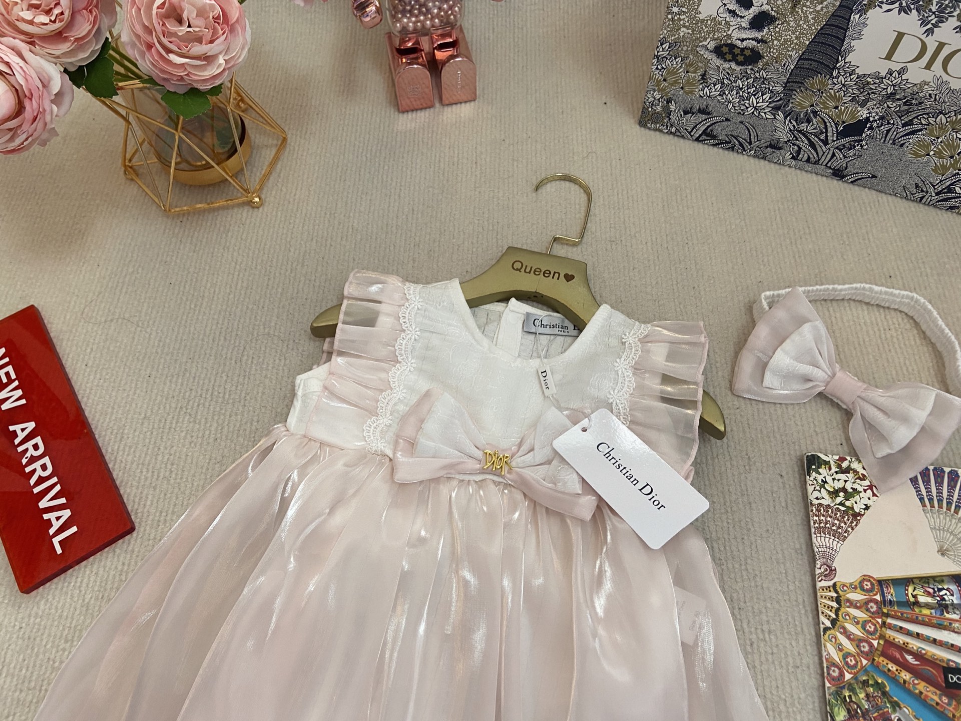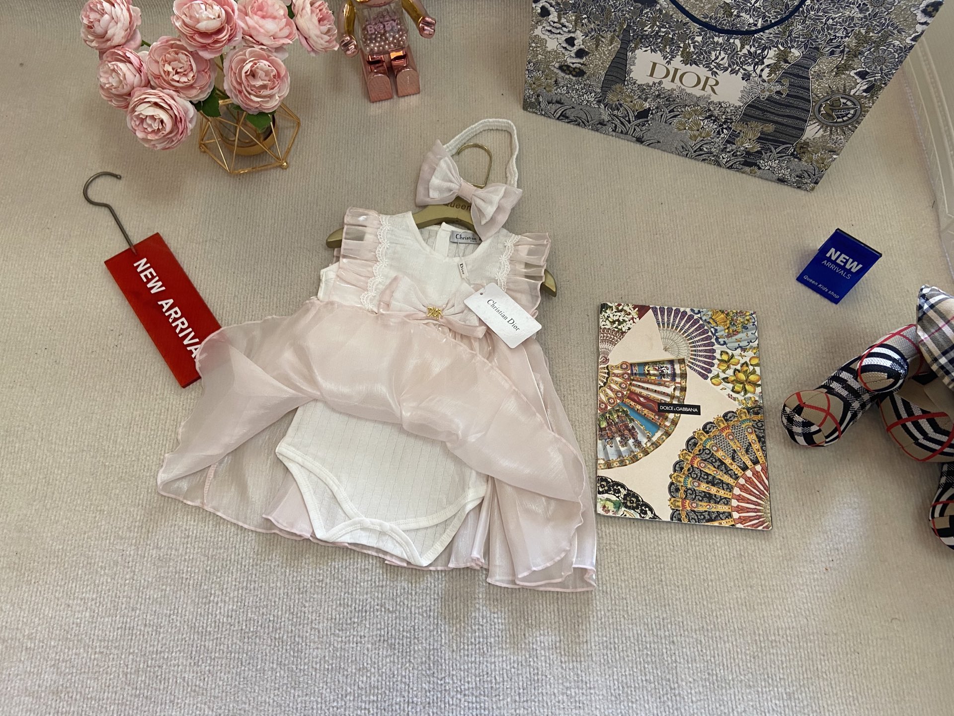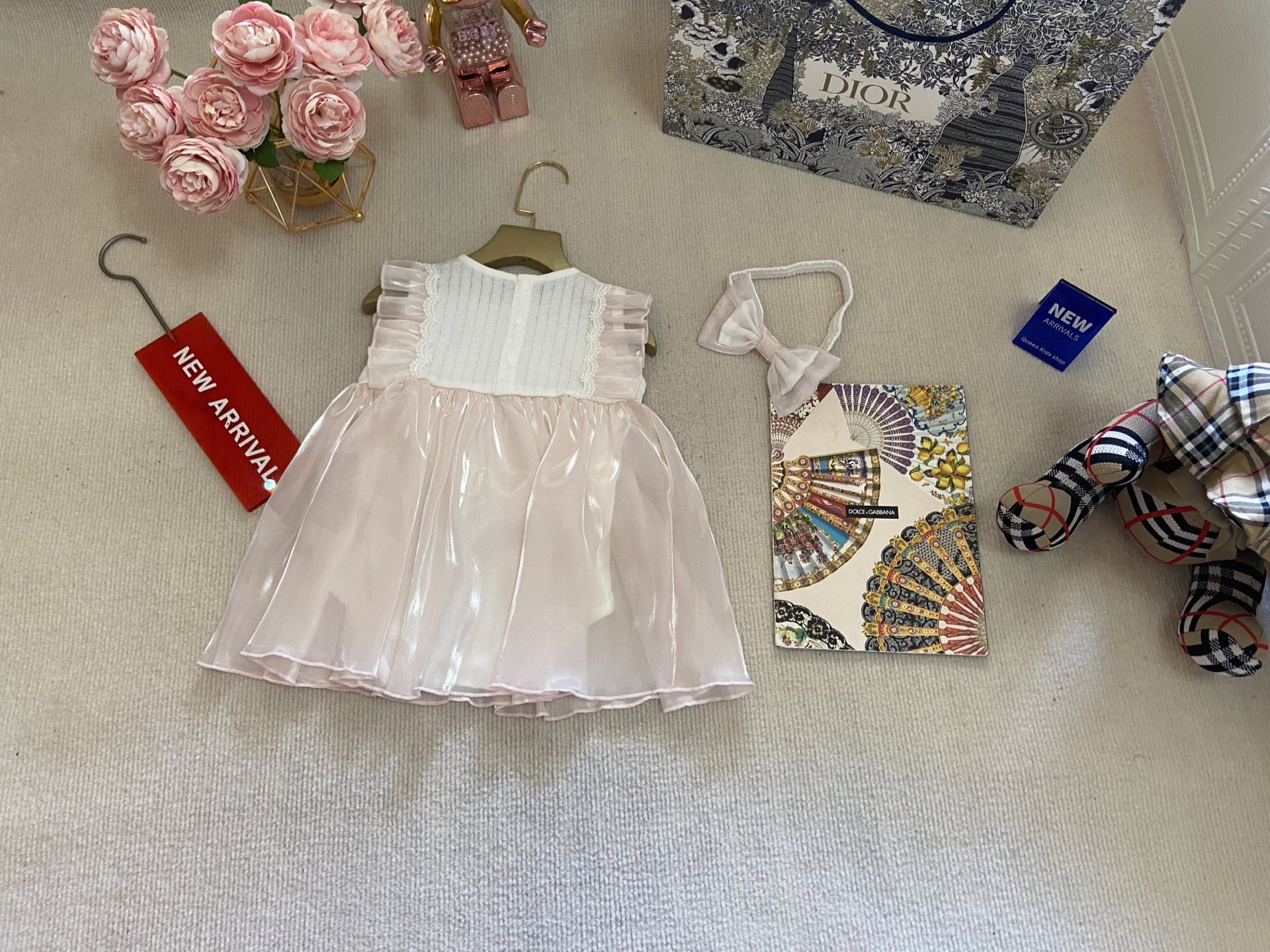 Book for one week! Dior, high-end children's wear, girls' harem, short-sleeved bagged skirt + headband, pure cotton fabric, comfortable and good-looking to wear, size :59-66-73-80-90cm