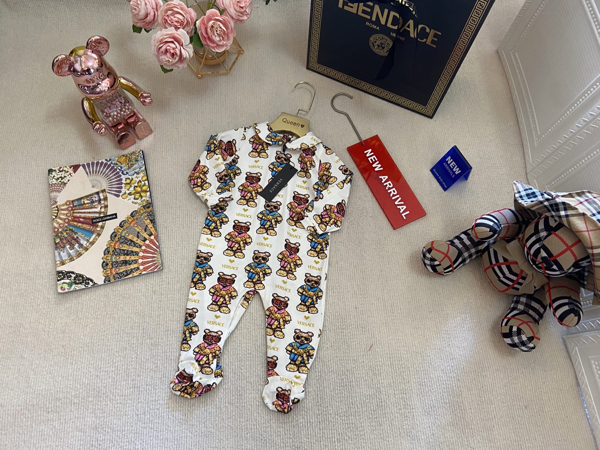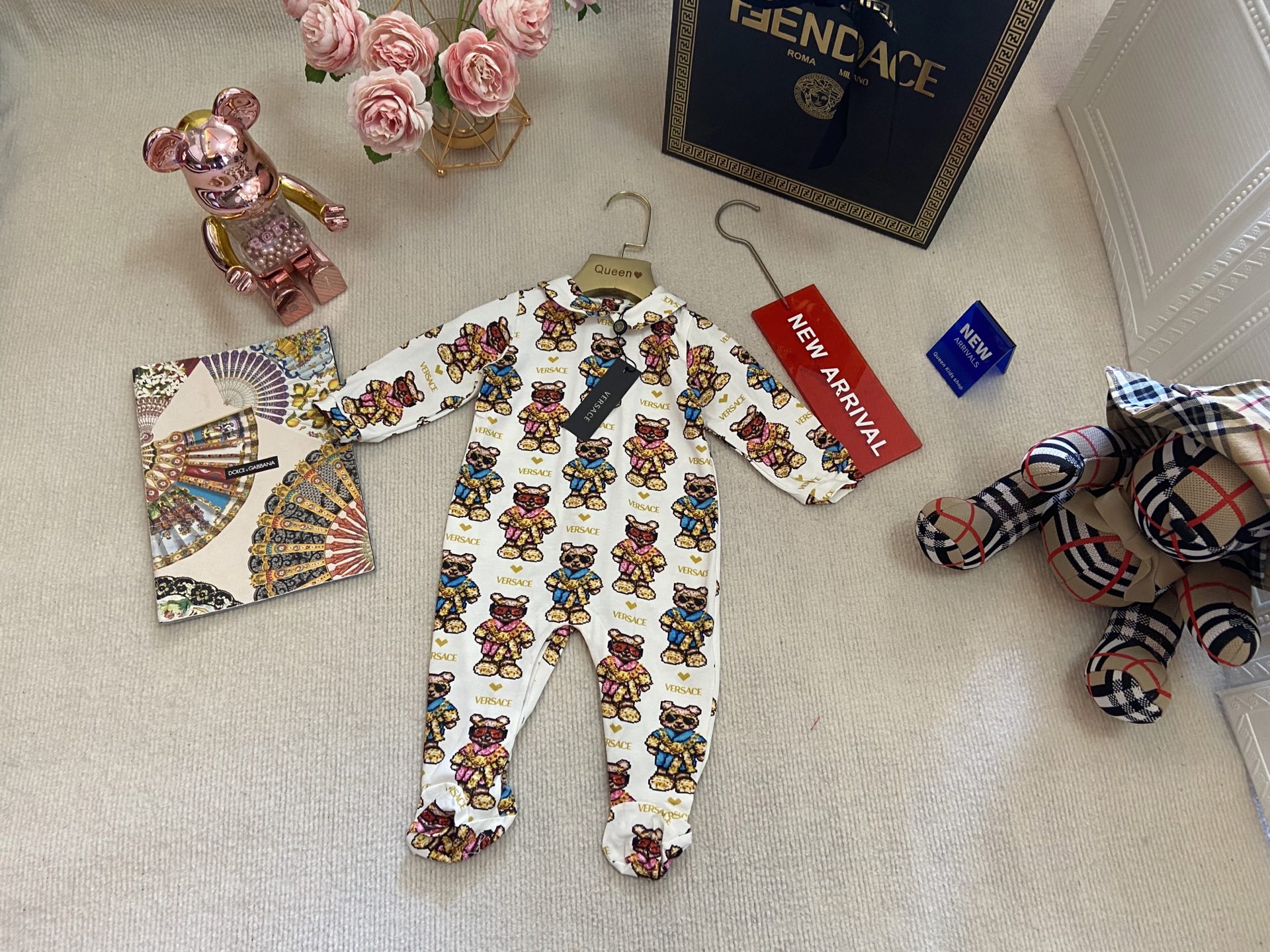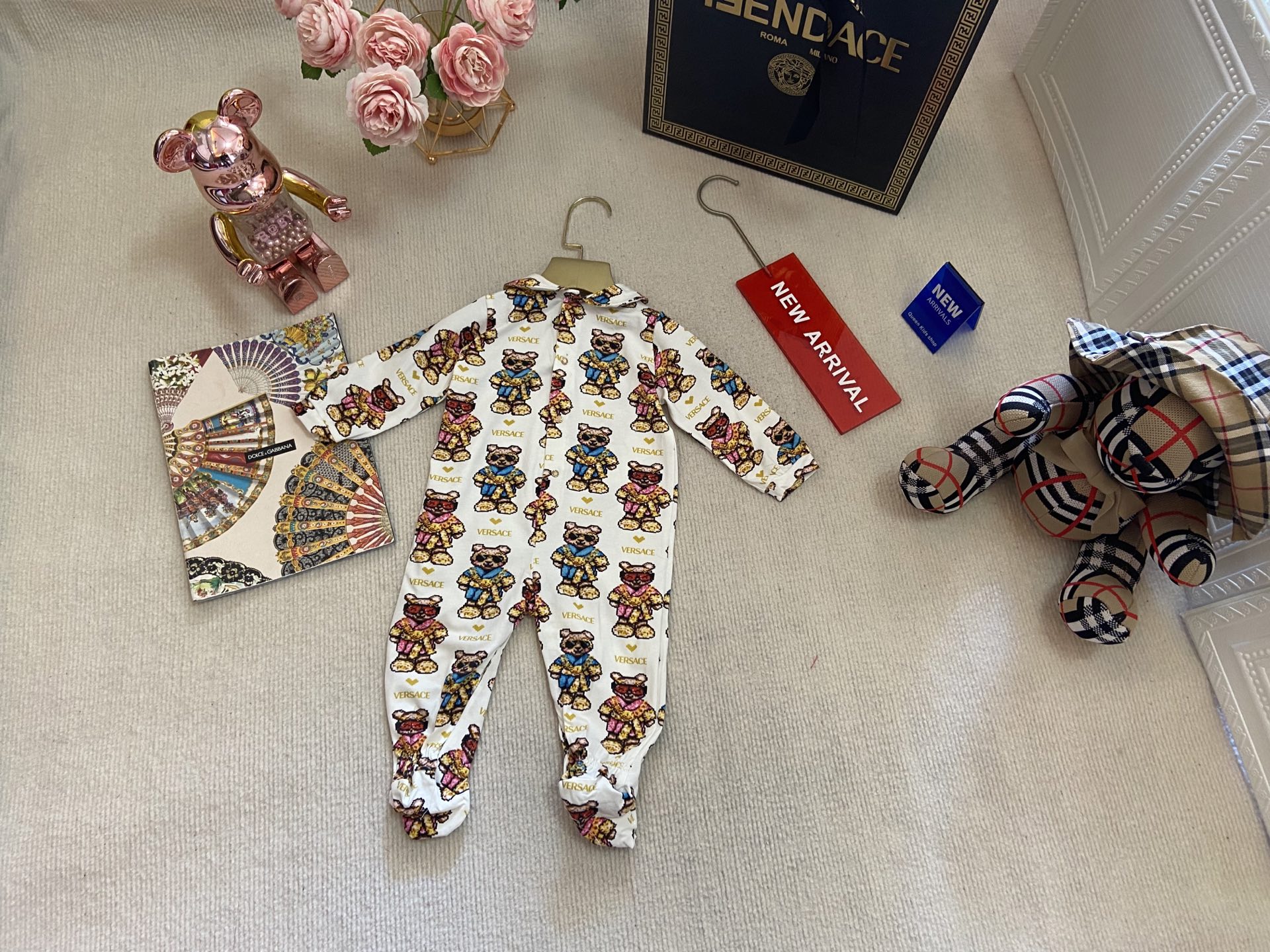 Book for one week! Versace, high-end children's clothing, boys' and girls' clothing, baby one-piece, full-print one-piece long-sleeved clothing, Class A pure cotton fabric is also very comfortable to wear next to the skin! Code size :59-6-3-80cm