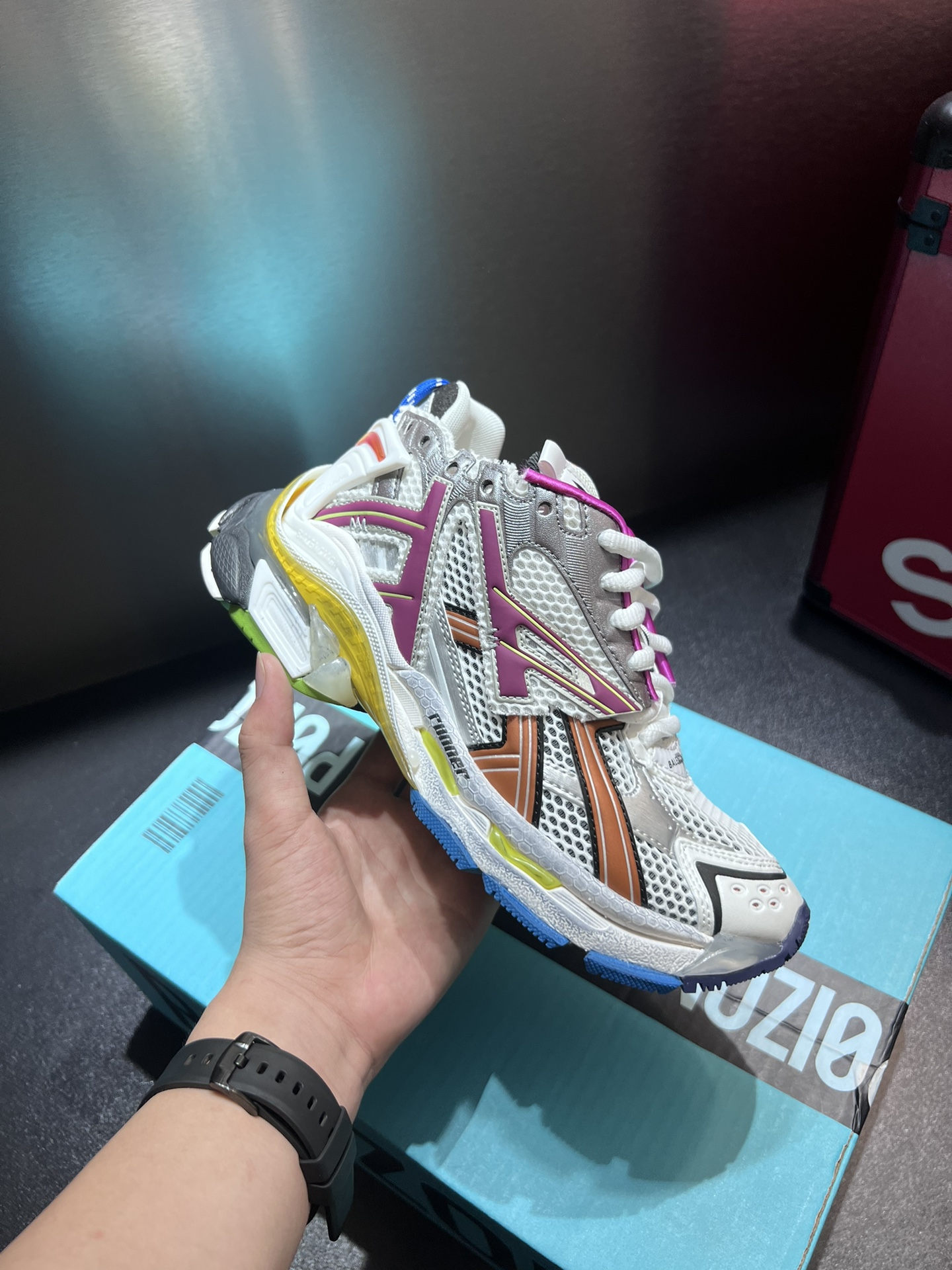 Style #5002?????? High-quality premium goods [Top Version] Balenciaga Runner sneakers Size: 35 36 37 38 39 40 41 42 43 44 45 46 Leather sports shoes without leather, made of mesh fabric, with wear and tear effect. The size is printed on the edge of the toe, the size is floating printed on the back, the runner's logo is printed on the outside, the Balenciaga brand logo is embroidered on the tongue, and the Balenciaga brand logo is printed on the back of the heel. The material is 70% polyurethane and 30% polyester fiber.