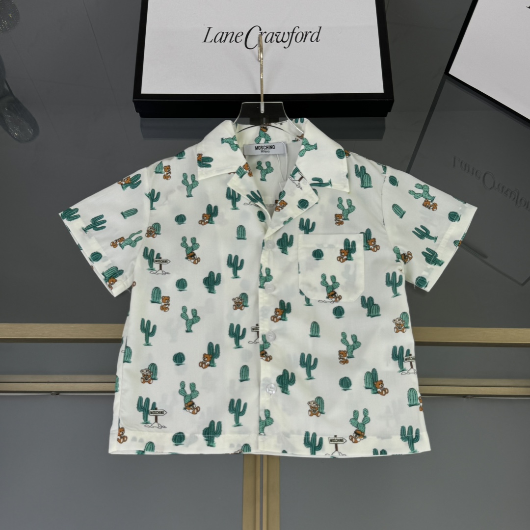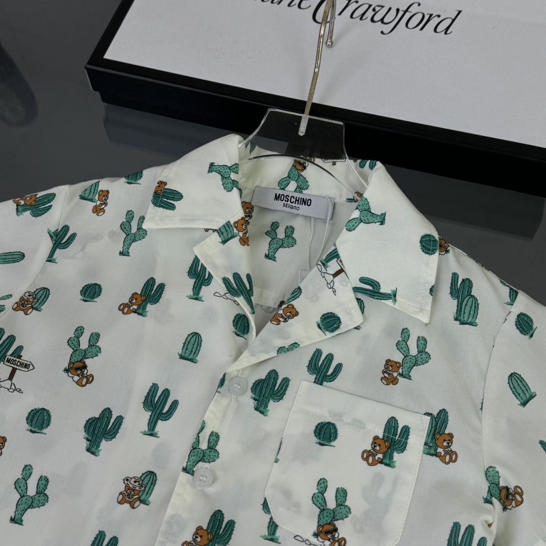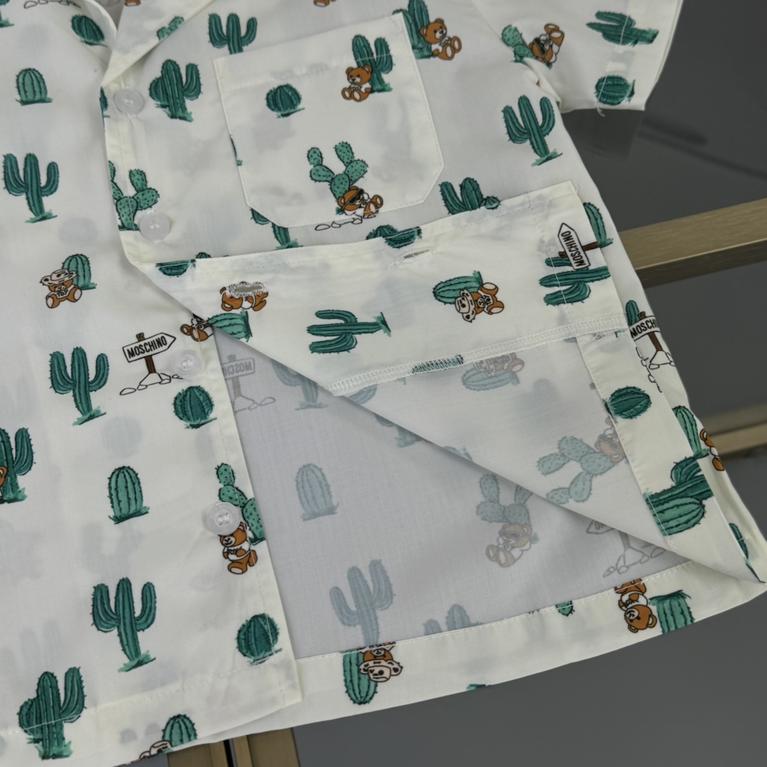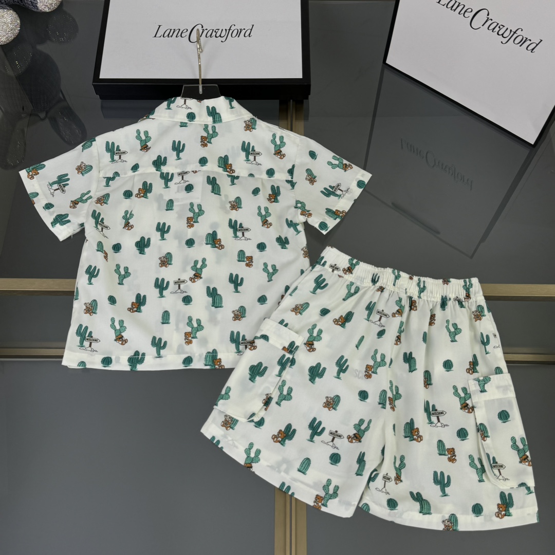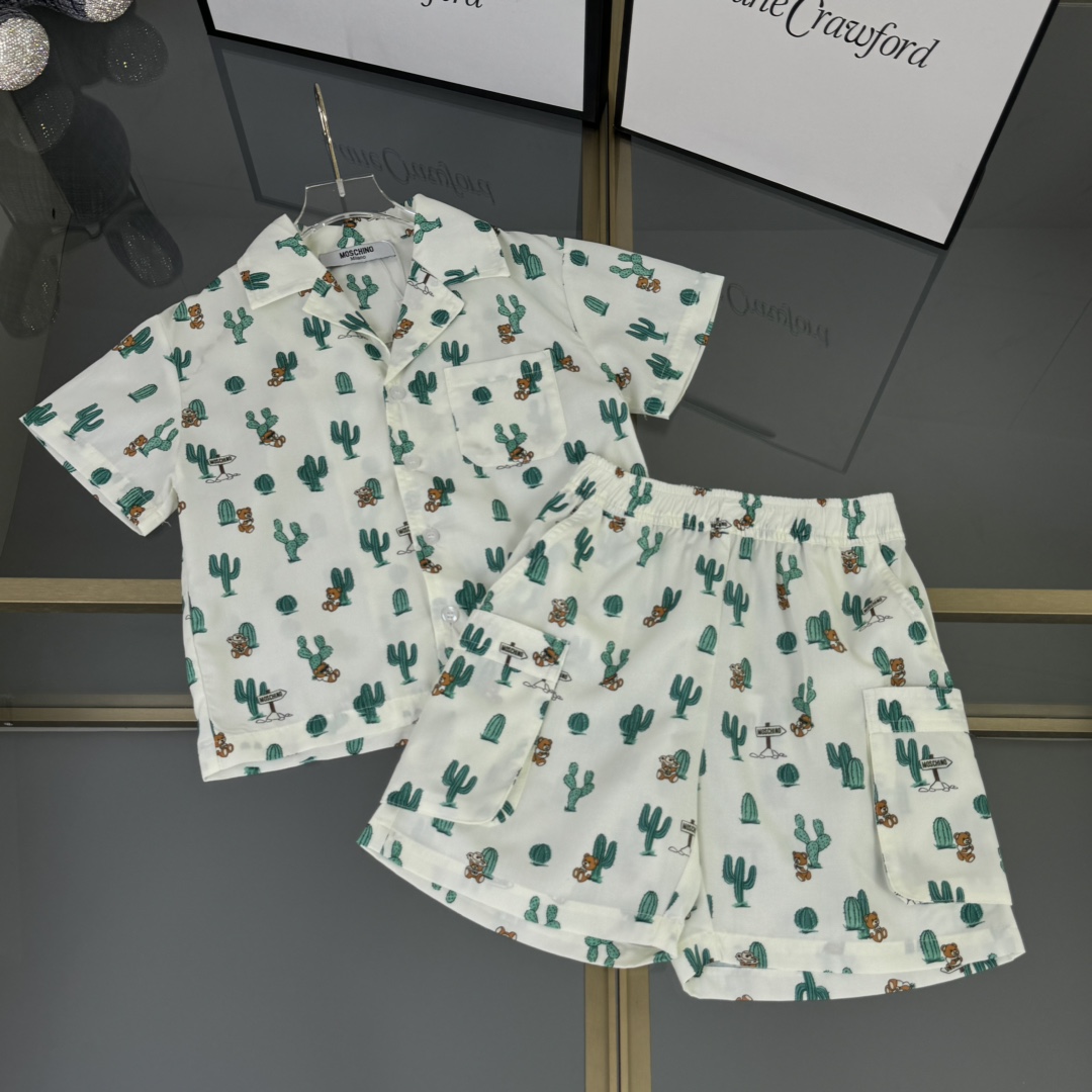 Moschino, high-end children's wear, private suit, custom graffiti color woven cotton fabric, tooling shorts Has pockets on both sides, the upper body comfortable, good-looking, code number: 90/100/110/120/130/140/150 cm