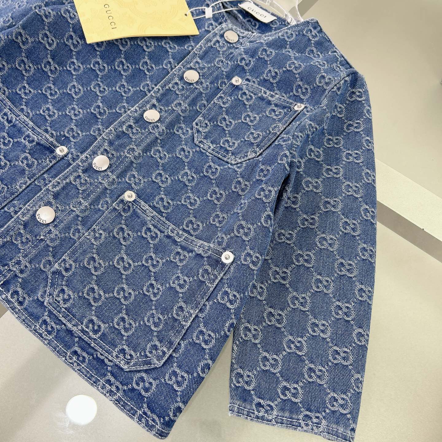 Reservation for 4 days! Gucci Gucci, high-end children's wear, private cowboy suit, imported jacquard machine process, the body comfortable, good-looking, color: blue, upper body comfortable, good-looking, code number: 100/110/120/130/140/150/160 cm