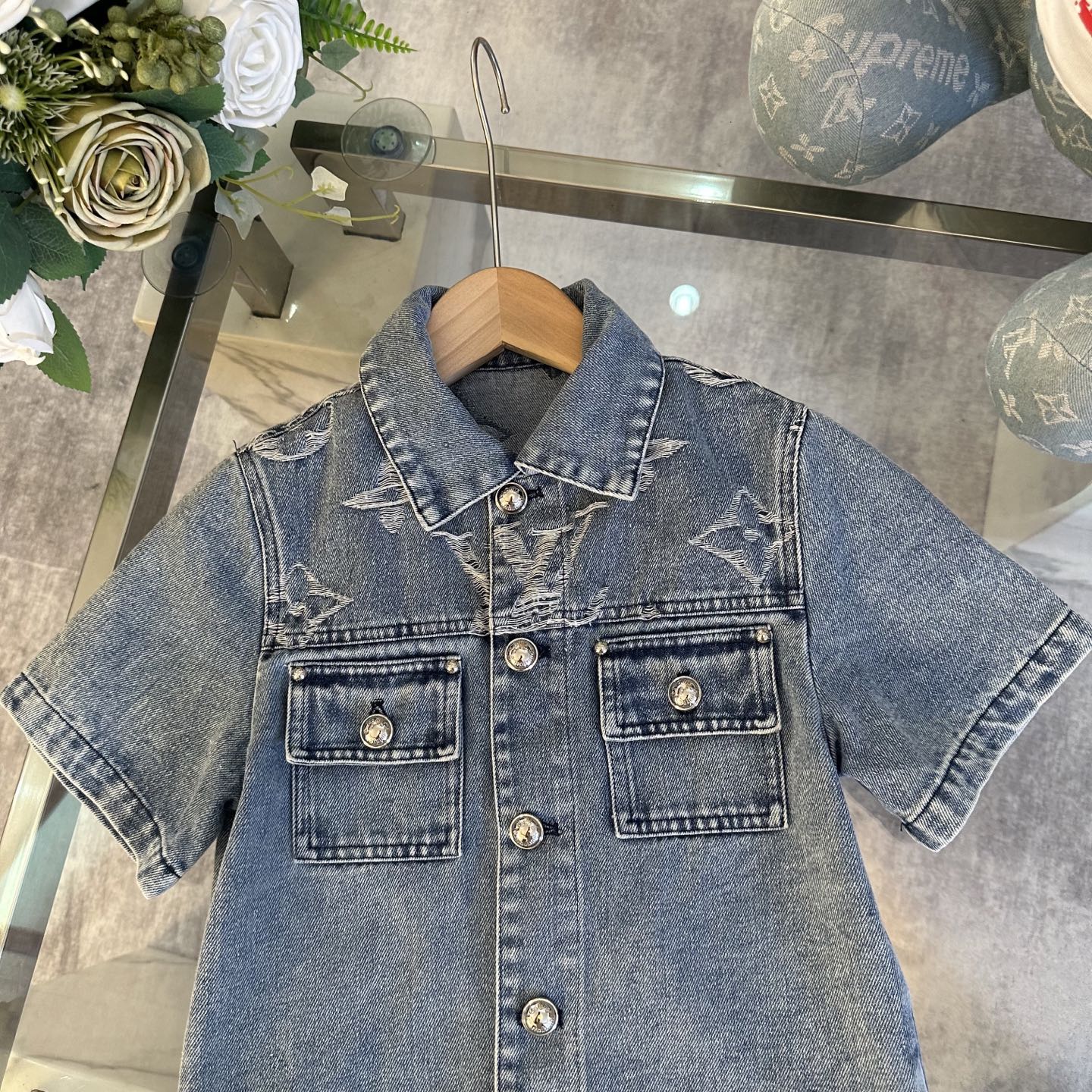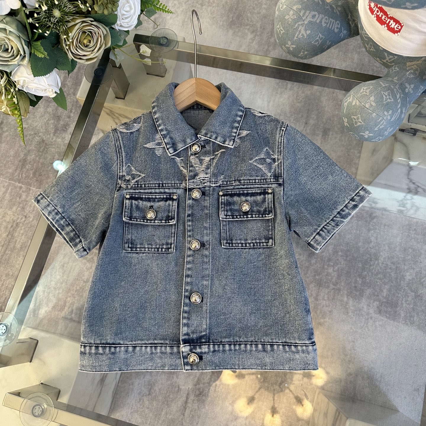 LV high-end children's wear, private cowboy suit, relaxing classic, custom jacquard denim fabric, wash water body comfortable, good-looking, code number: 100/110/120/130/140/150 cm