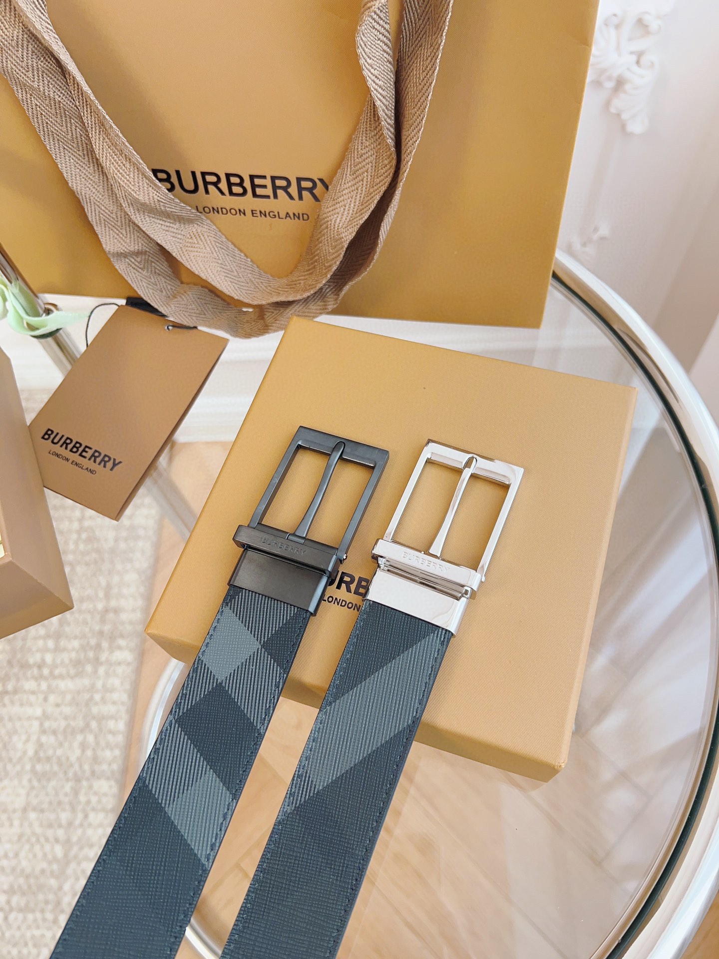 Burberry is made of top-grain leather from the original factory. The quality of the check/cowhide is beyond doubt. There is no better, only the best. The width of the belt is 3.5 cm