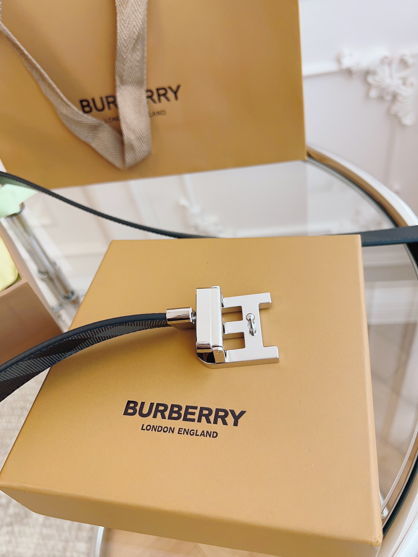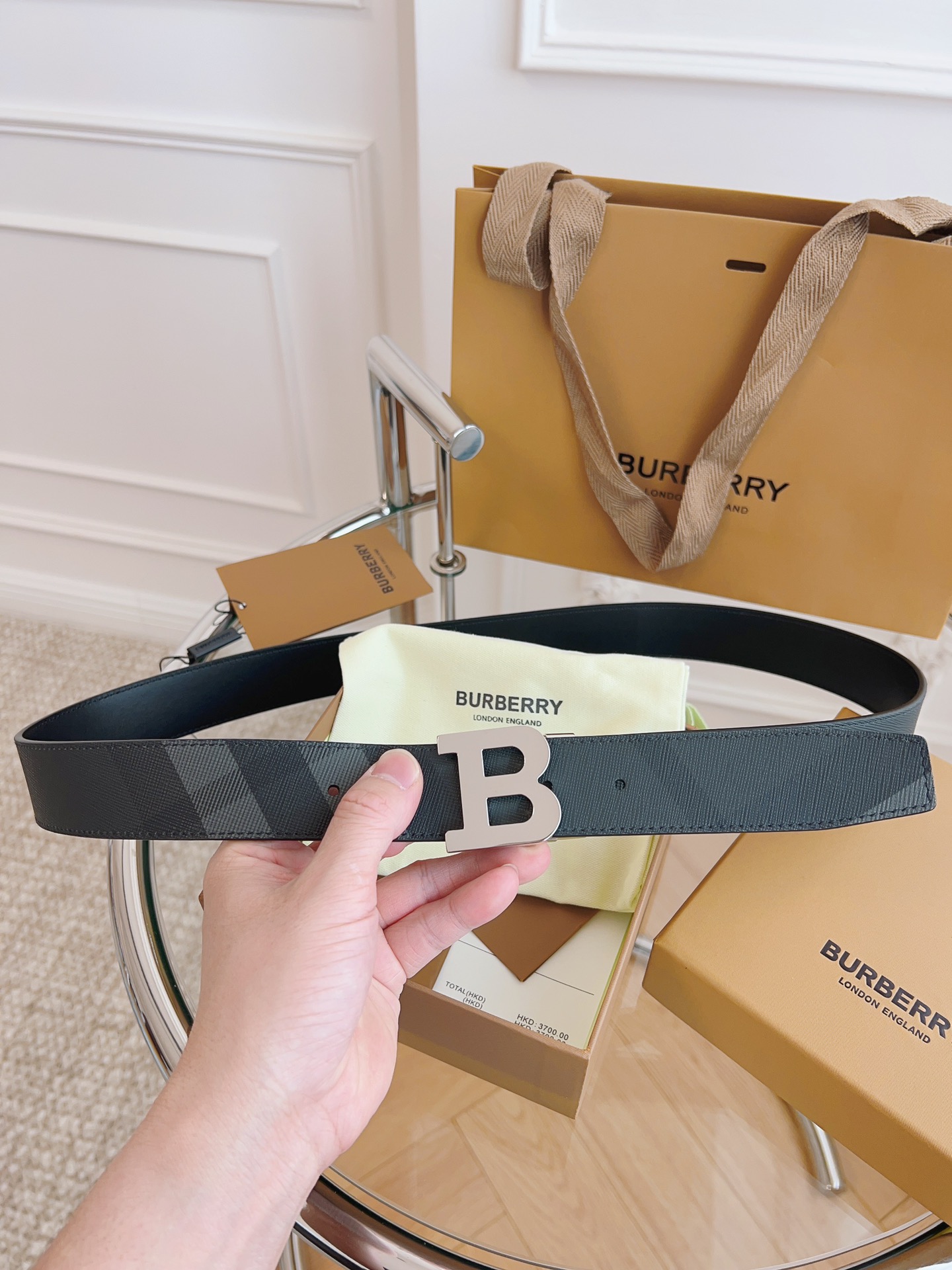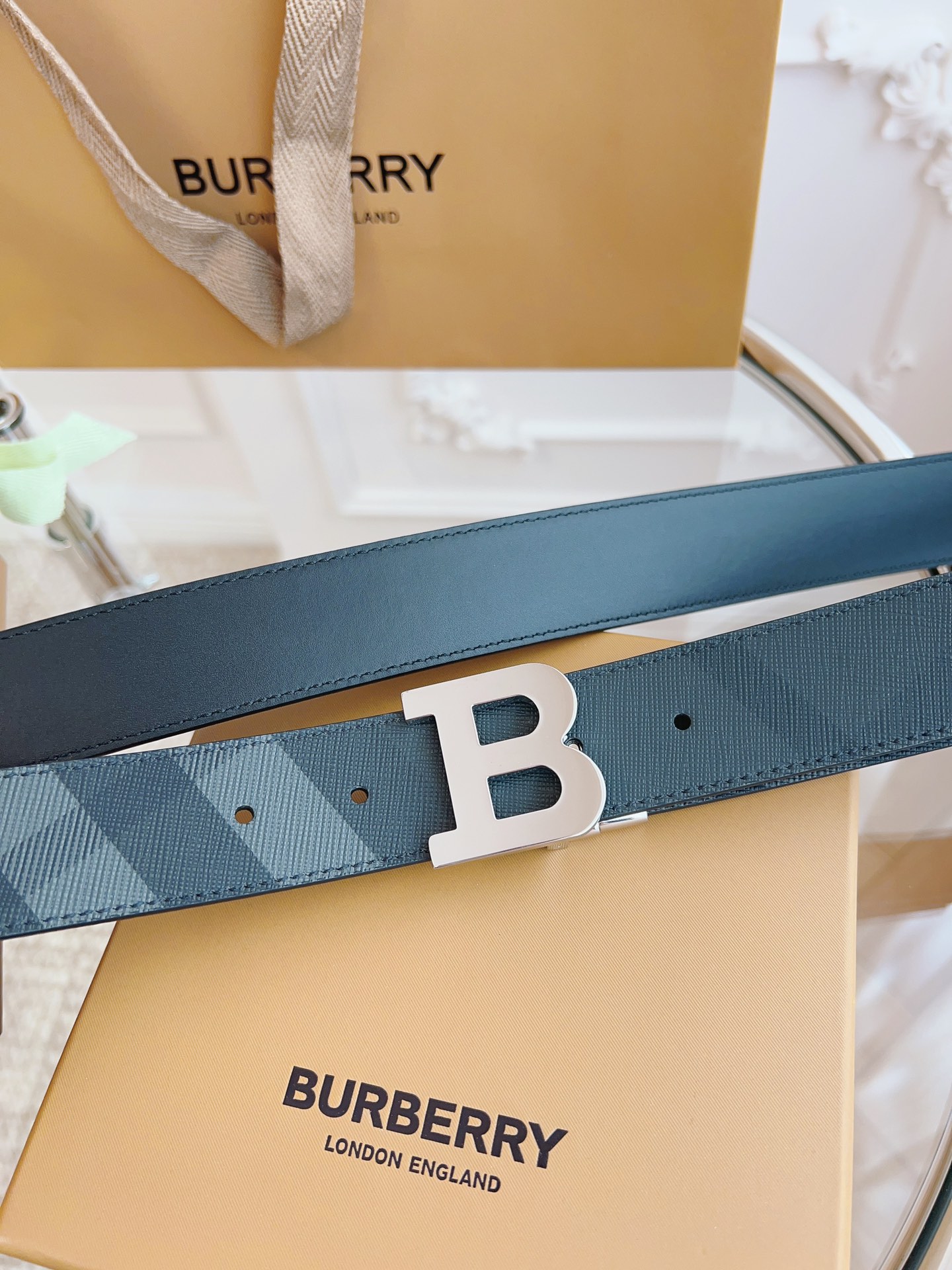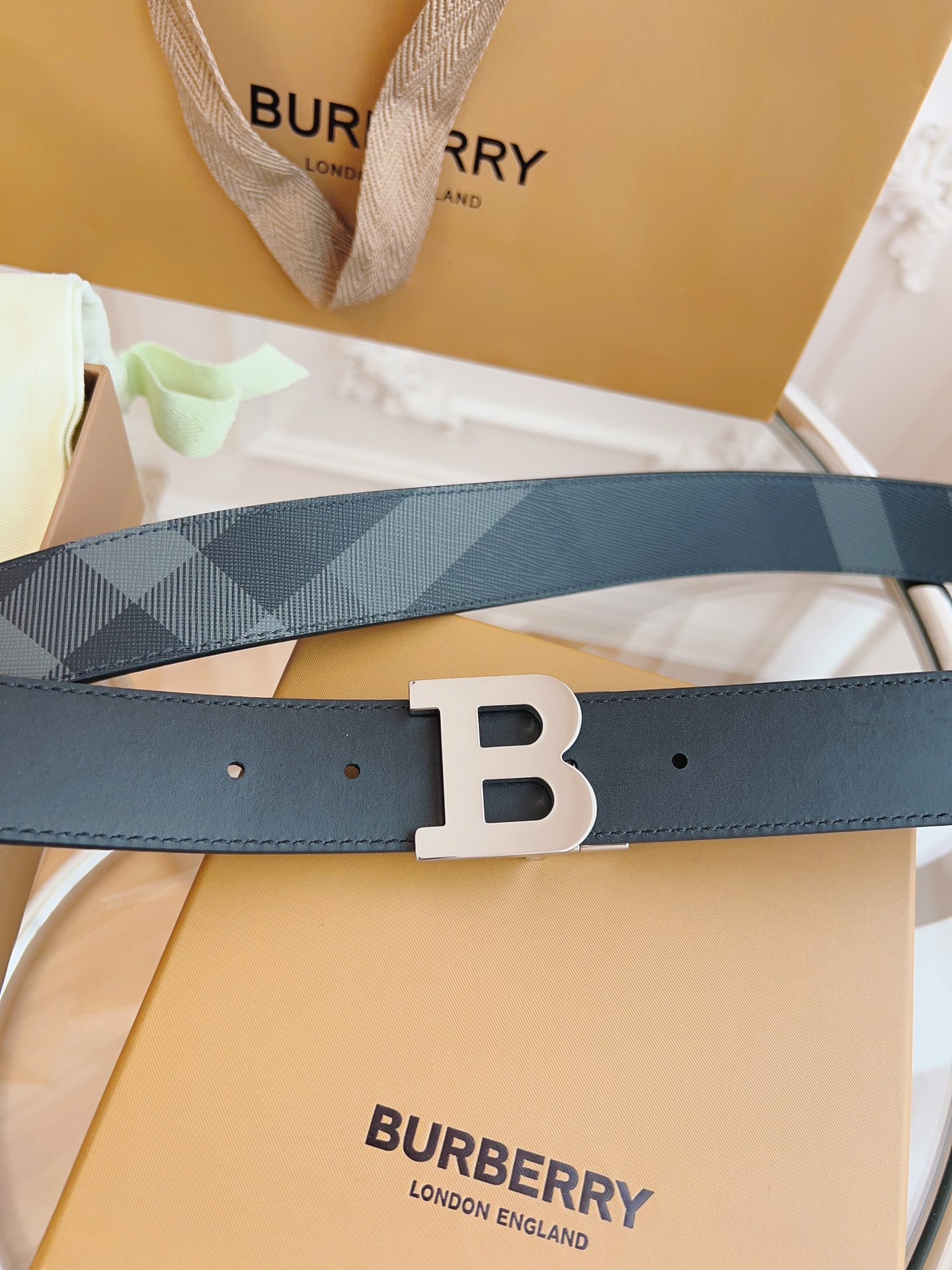 Burberry is made of top-grain leather from the original factory. The quality of the check/cowhide is beyond doubt. There is no better, only the best. The width of the belt is 3.5 cm