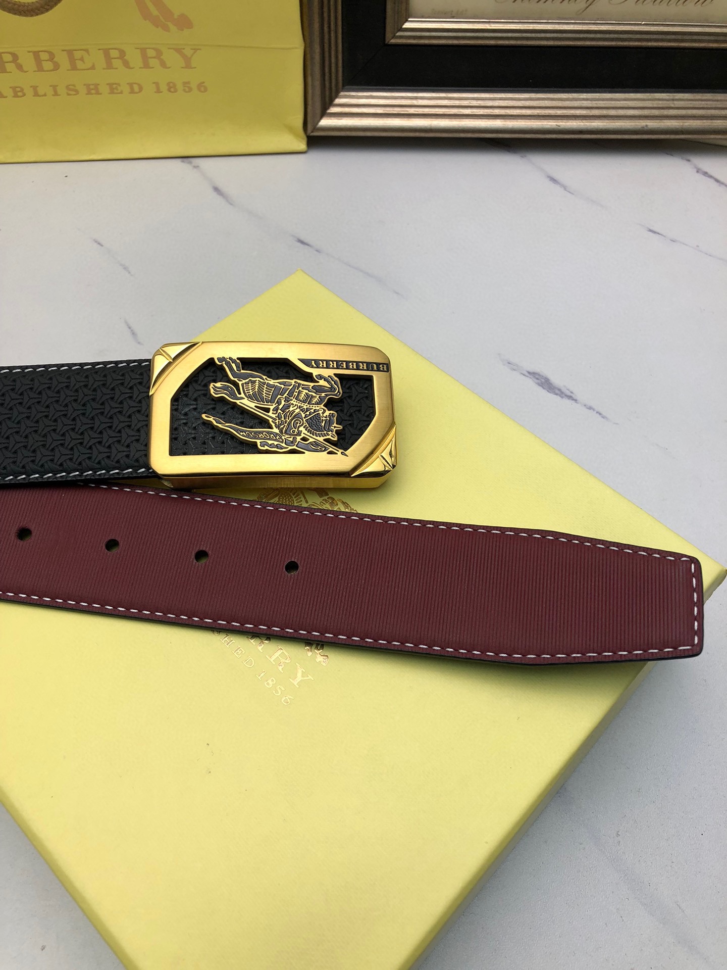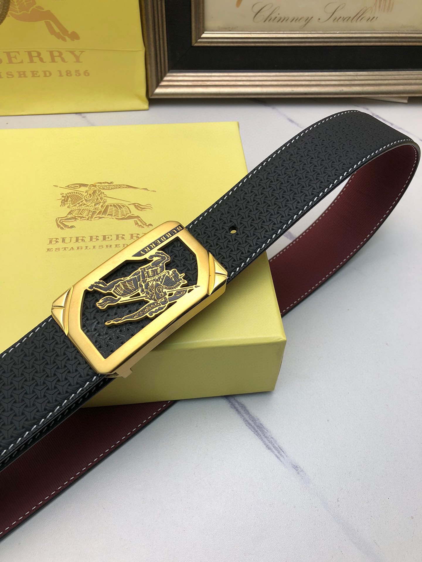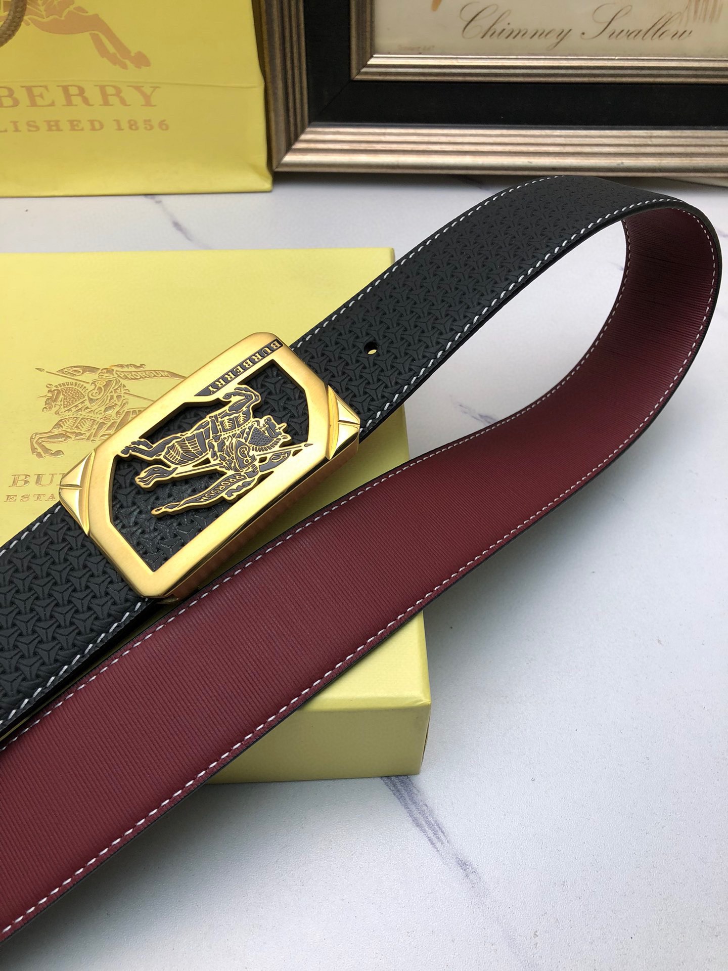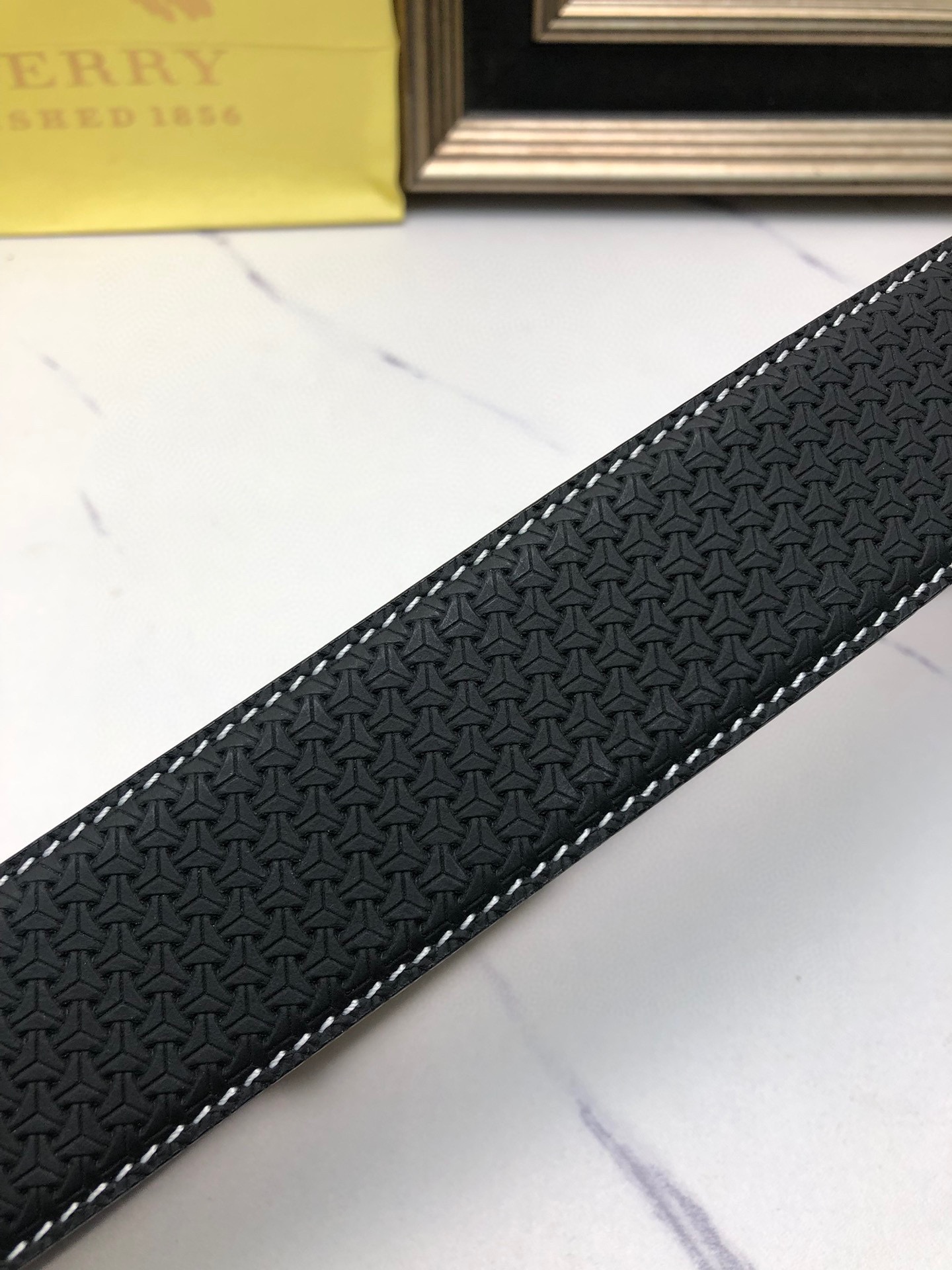 Burberry: Original single-layer calfskin embossed with patterns, lined with plain cowhide base, creating a woven appearance. Decorated with the original single buckle of the logo. The counter width is 4.0