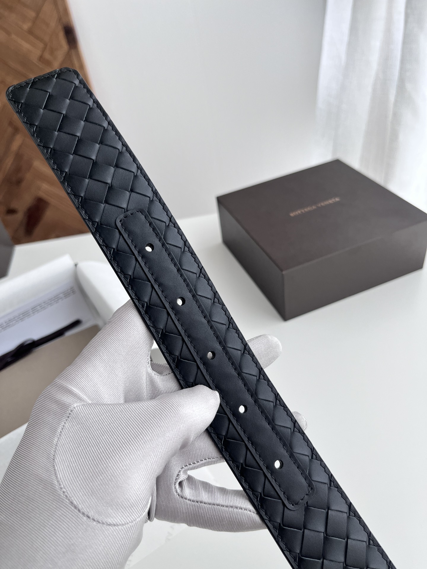 BV top-quality 2024 new wide men's belt, handcrafted with small checkered intrecciato piccolo braided Italian calfskin, paired with vacuum gun-colored pin buckle holes. Newly designed belt width 4.0cm. Color: black