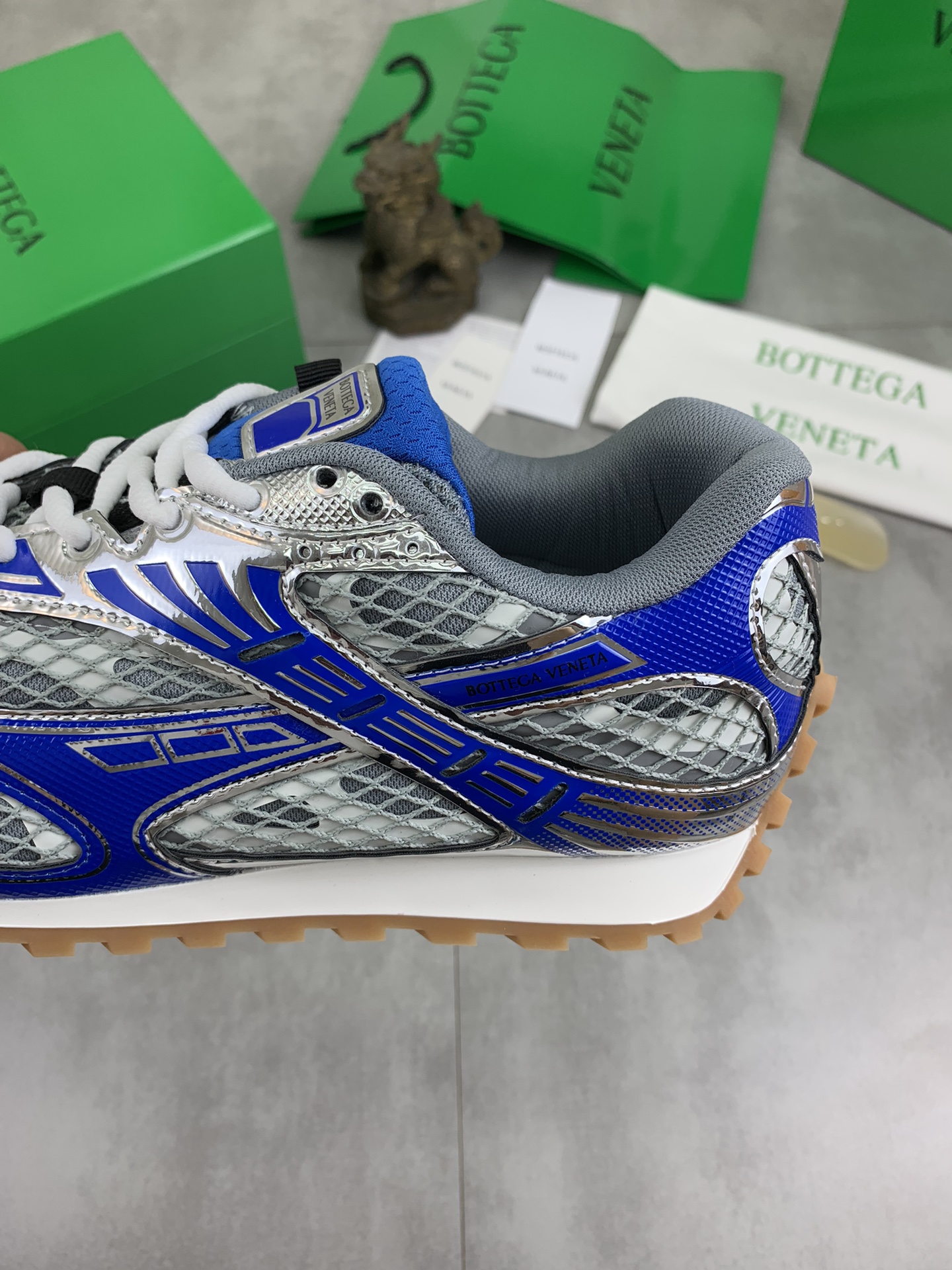 Model #3007?????? Bottega Veneta new Orbit sneakers for couples This shoe model draws inspiration from the silhouette of sports shoes from the 1990s. Its distinctive feature lies in the application of a mesh texture and the cross-covered upper made of different materials, undoubtedly paying tribute to the brand's famous "Int Recciato" pattern In addition, the sole design is also relatively slender and elegant. The outsole extends to the back of the heel, ingeniously combining sporty elements with fashion inspiration It adopts lightweight technological metal leather spliced mesh fabric Women's style 35-40 (custom-made 40) Men's style 39-45 (custom-made 45) With the original packaging