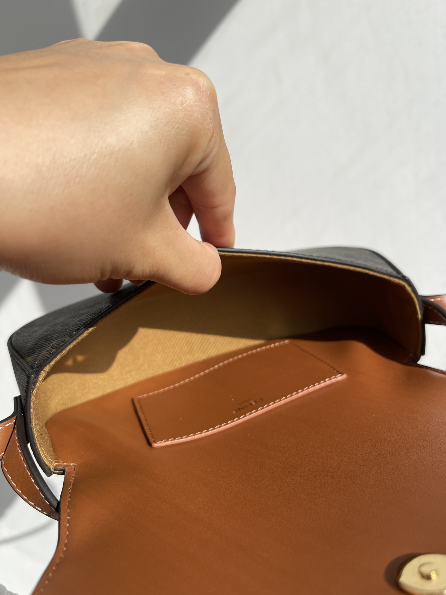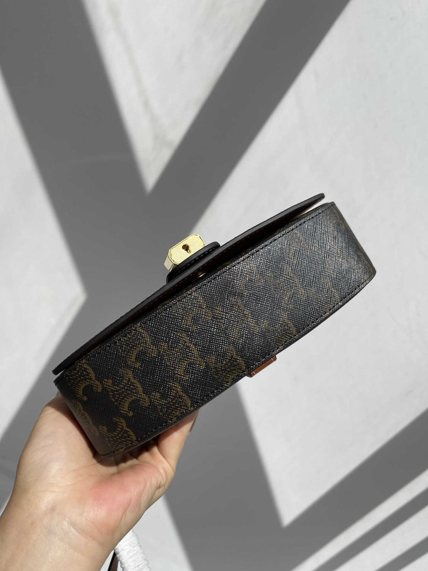 Celine Arc de TRIOMPHE 21 New Edition Monogram CANVAS saddle Lock Clutch underarm bag. The bag body is made of a special monogram PVC fabric with excellent texture. It is fully printed with the TRIOMPHE CANVAS logo print. The monogram color is very classic and becomes more and more attractive the more you look at it. It is full of retro style. Combined with the popular brown long and short cowhide double bag strap design, Super retro, small and exquisite, can be carried on the shoulder or by hand, simple yet elegant. The bag is waterproof and wear-resistant, with an excellent texture, so you don't have to worry about scratches. The design is very meticulous. It can be used for multiple purposes in one bag and is hard to put down. The flip cover is equipped with a decorative lock, and it features a push-button opening and closing design. The fabric lining is made of patchwork leather, with no compartments. There is an inner flat pocket. Despite its small size, the bag has a considerable capacity and can easily hold all models of mobile phones and daily necessities for going out. Moreover, the bag is very lightweight, comfortable and fashionable to wear. It can be very casual or very formal, and has strong versatility in matching. Suitable for girls of any age, it's simply photogenic when posing. I just can't put it down. It's a must-have for goddesses! Size: 18X8X5cm nNumber: #63933850