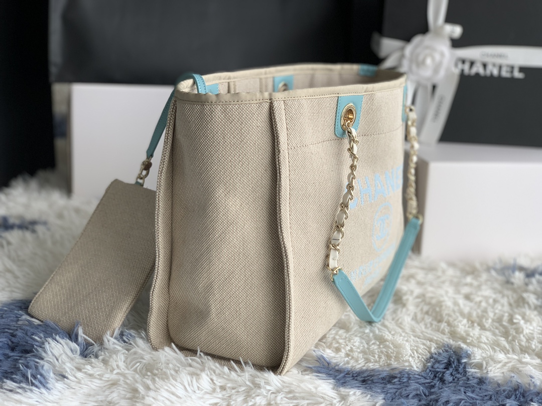 French high-end custom-made Chanel AS67001# Chanel 2022 New Color Mother and Son Beach Denim Canvas Bag: Classic Travel Shopping Bag Series [Applause] Original cowhide handle. The simple buckle design of the mommy bag. Every detail is matched with the fabric and the embroidered LOGO. The quality is superb! This cloth bag has become a bestseller in the counter! size: 33x14.5x24 cm