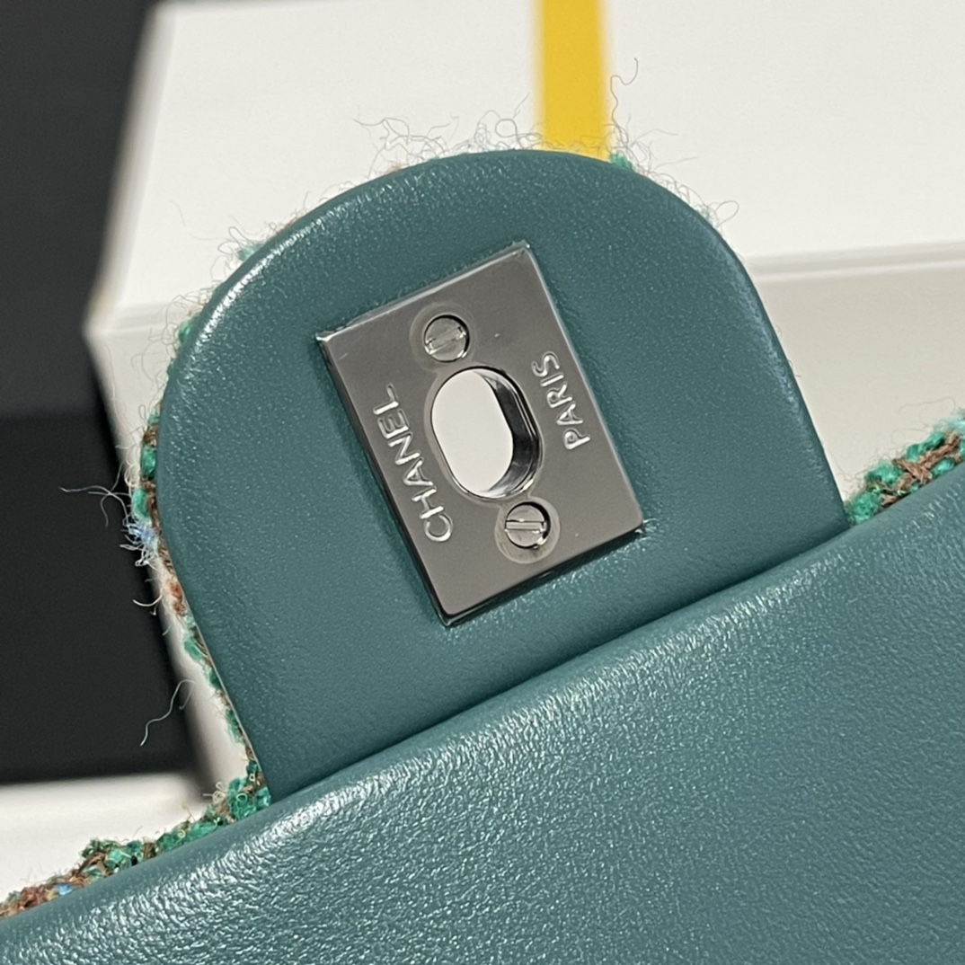 Real photos of Chanel 23A green tweed in stock CF 20CM bulk Love IT SO MUCH ???? can't wait to get IT ???? TO the extent of surprise for YOU completely ???? carry IT must be the most SPECIAL and the most eye-catching little fairy ?? ELEGANCE and FASHION IS ITS synonyM ????? Spring and summer beautiful atmosphere full of woolen material, sheepskin inside, CAPACITY TOO MUCH, go shopping, date It 's TOO BEAUTIFUL with little SISTER ONE BESTIe bag each ???? THIS IS A super long-lasting bestSELLER that can be carried for N years ?? Size (20cm) Model: 69900