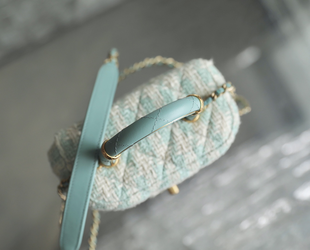 Brand NEW ARRIVAL ?????????????? ?????? Spring/summer tweed Youdaoplaceholder0 Small ring makeup bag light blue/off-white Counter price ???????????????? Purchase ?? Development Youdaoplaceholder0 Who can refuse ???????????? tweED makeup bag Light and DELICATE TOUCH THAT IS JUST TOO COMFORTABLE ?? Diamond-patterned vintage double ?? clasp, wrist with two ???????? rings ? It is both unique and sophisticated, simply an artistic handicraft. Metal: thick-plated ?????? gold buckle Leather material: Tweed/lambskin Size: ????*????. Youdaoplaceholder2 *?? ????
