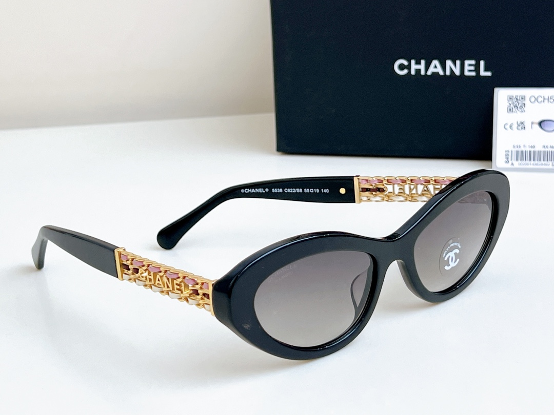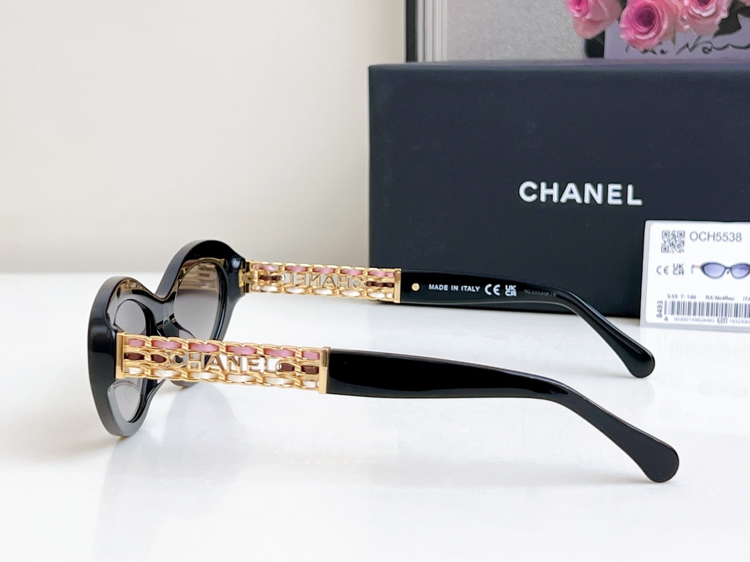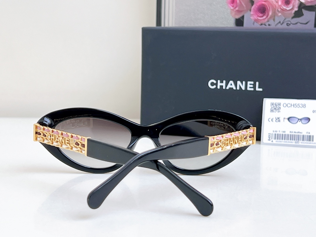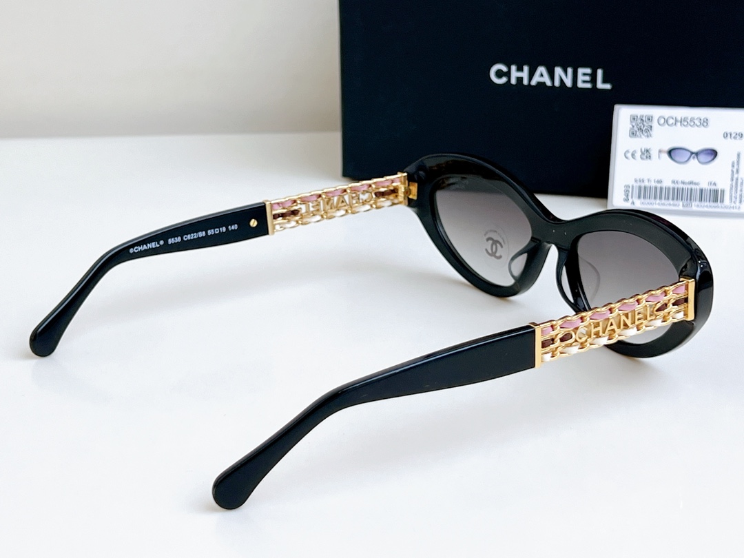Compare your money for goods with ?? High version 1:1 color Exquisite Xiaoxiang's stunning sunglasses Three-color sheepskin woven temple legs CHANE* MOD: 5538 SIZE: 55 holes, 19-140