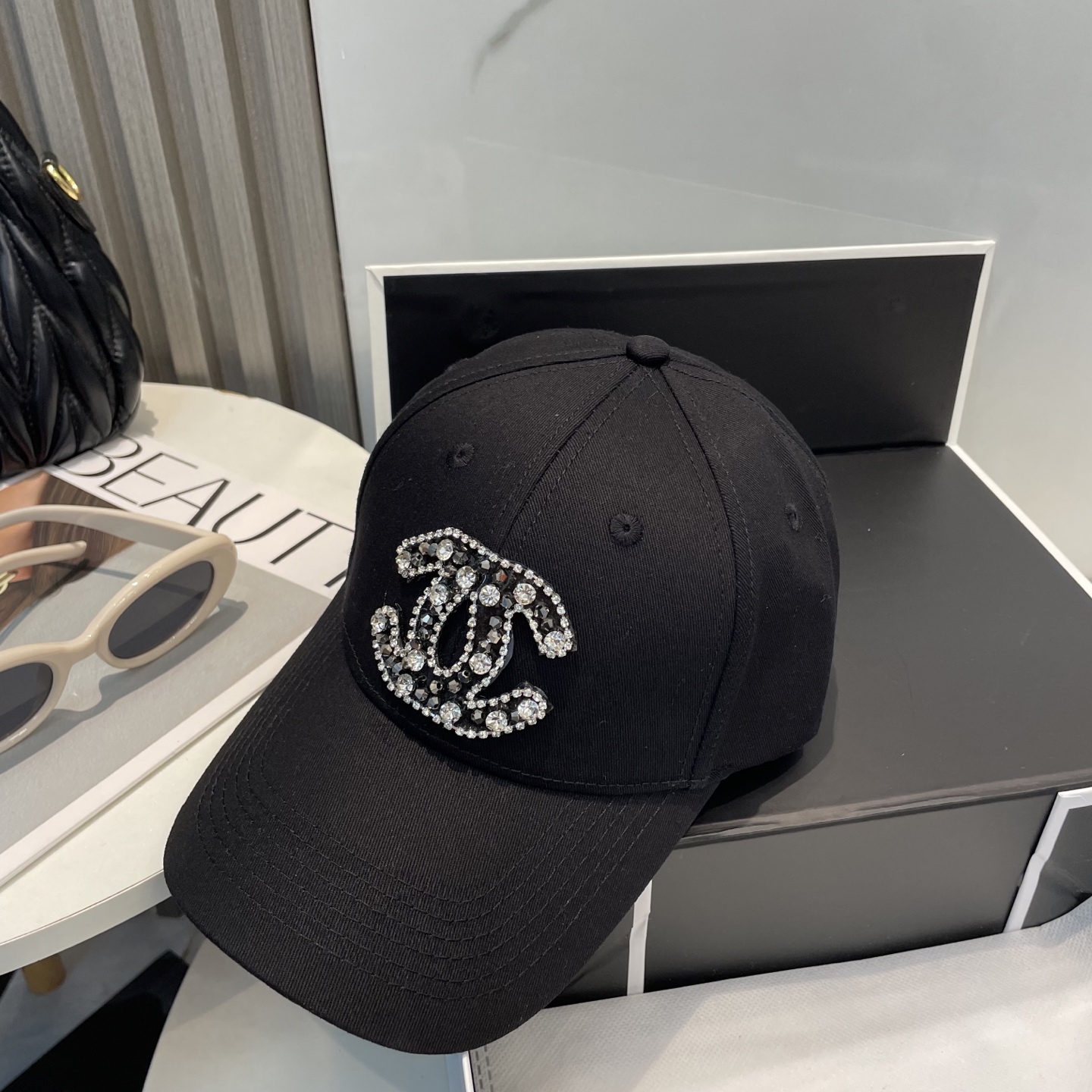 CHANEL's new high-end custom-made hardtop baseball cap with full diamonds features the classic and simple logo of Xiaoxiang. It is a fashionable and casual design that is a best-selling new product