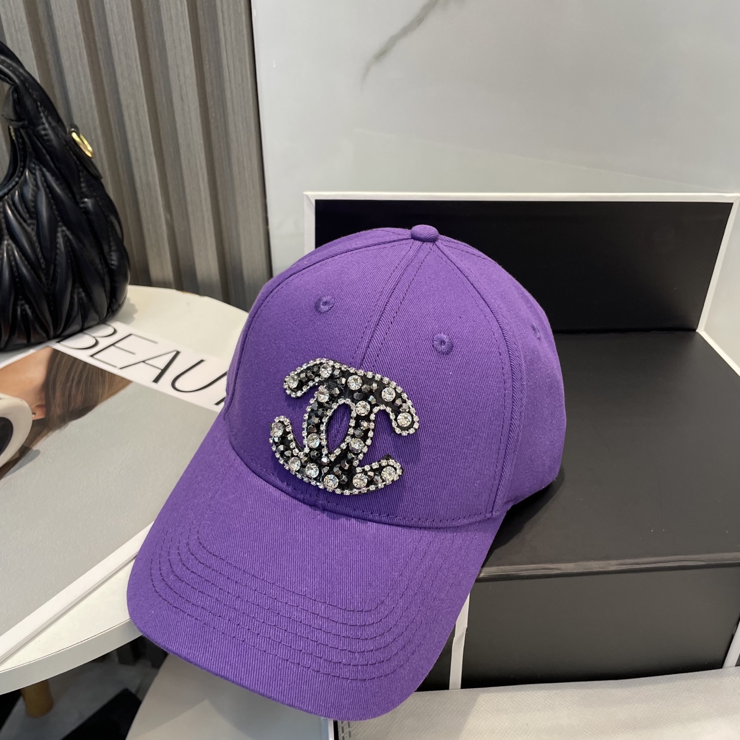 CHANEL's new high-end custom-made hardtop baseball cap with full diamonds features the classic and simple logo of Xiaoxiang. It is a fashionable and casual design that is a best-selling new product