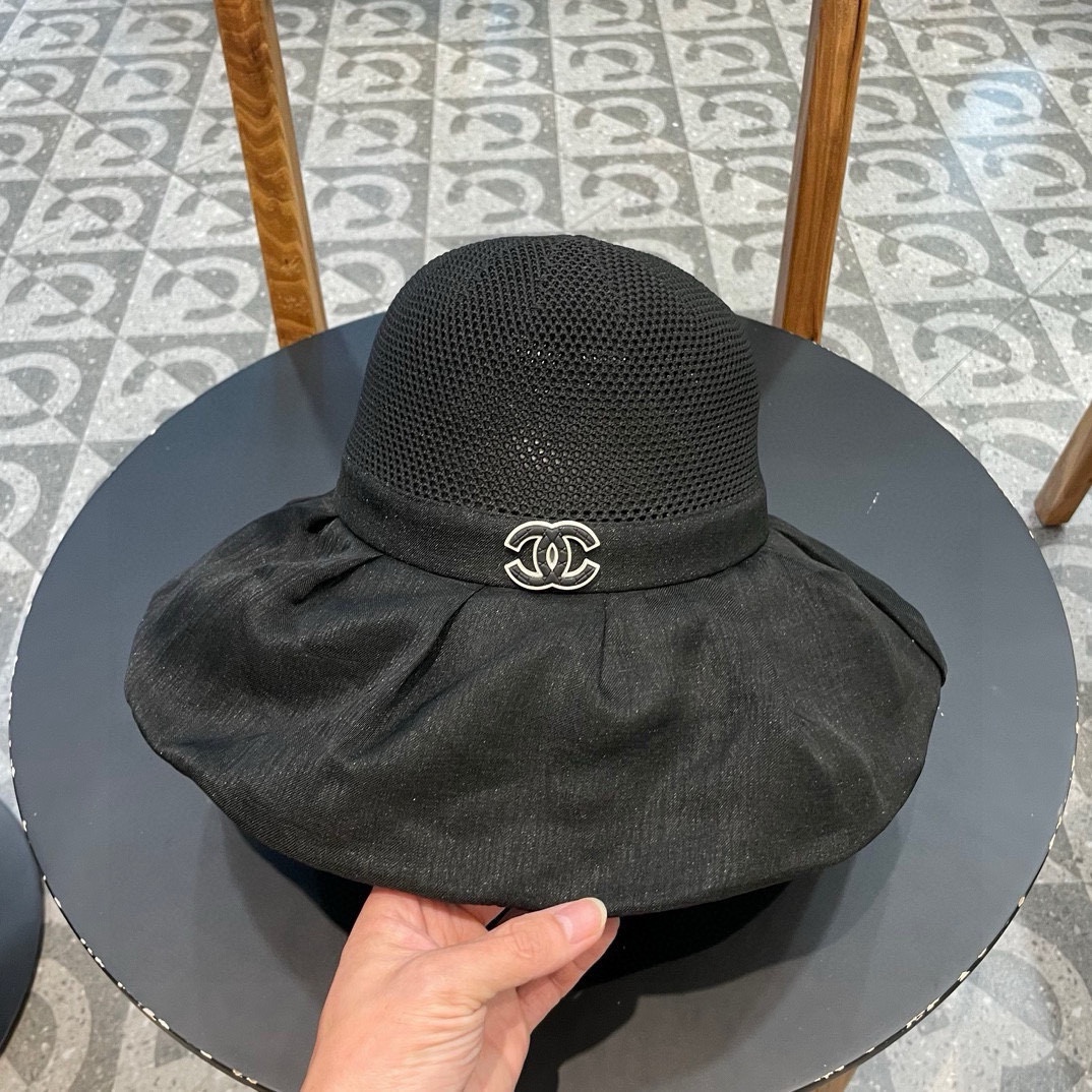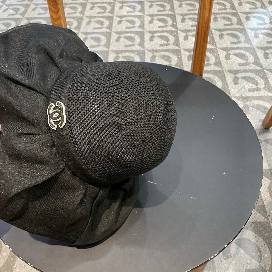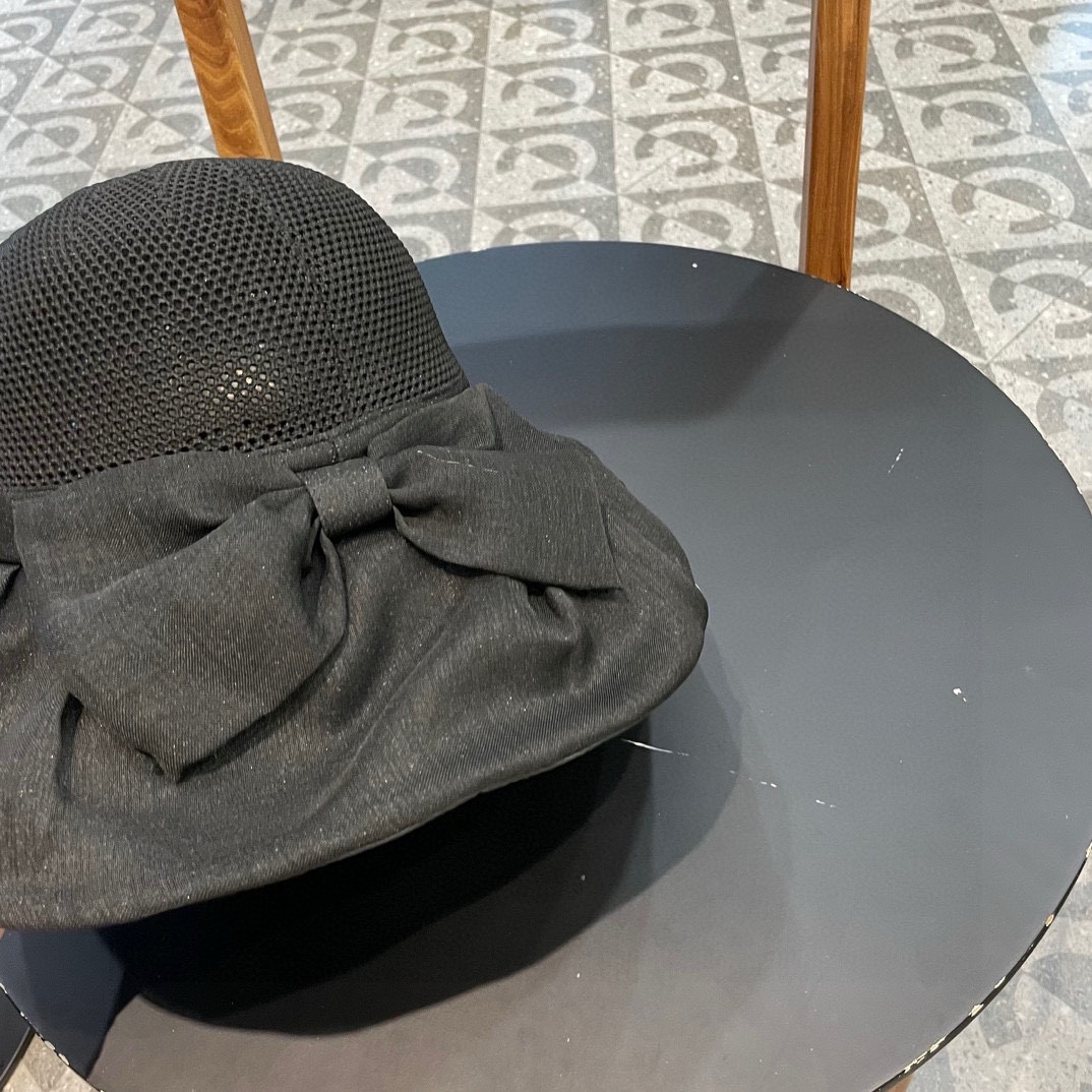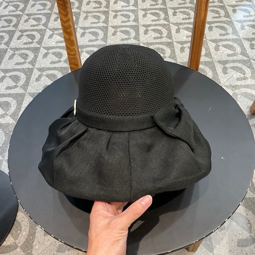 Chanel Spring/summer Omega yarn large bow straw hat, sun hat, women's foldable bow elegant vacation fisherman hat
