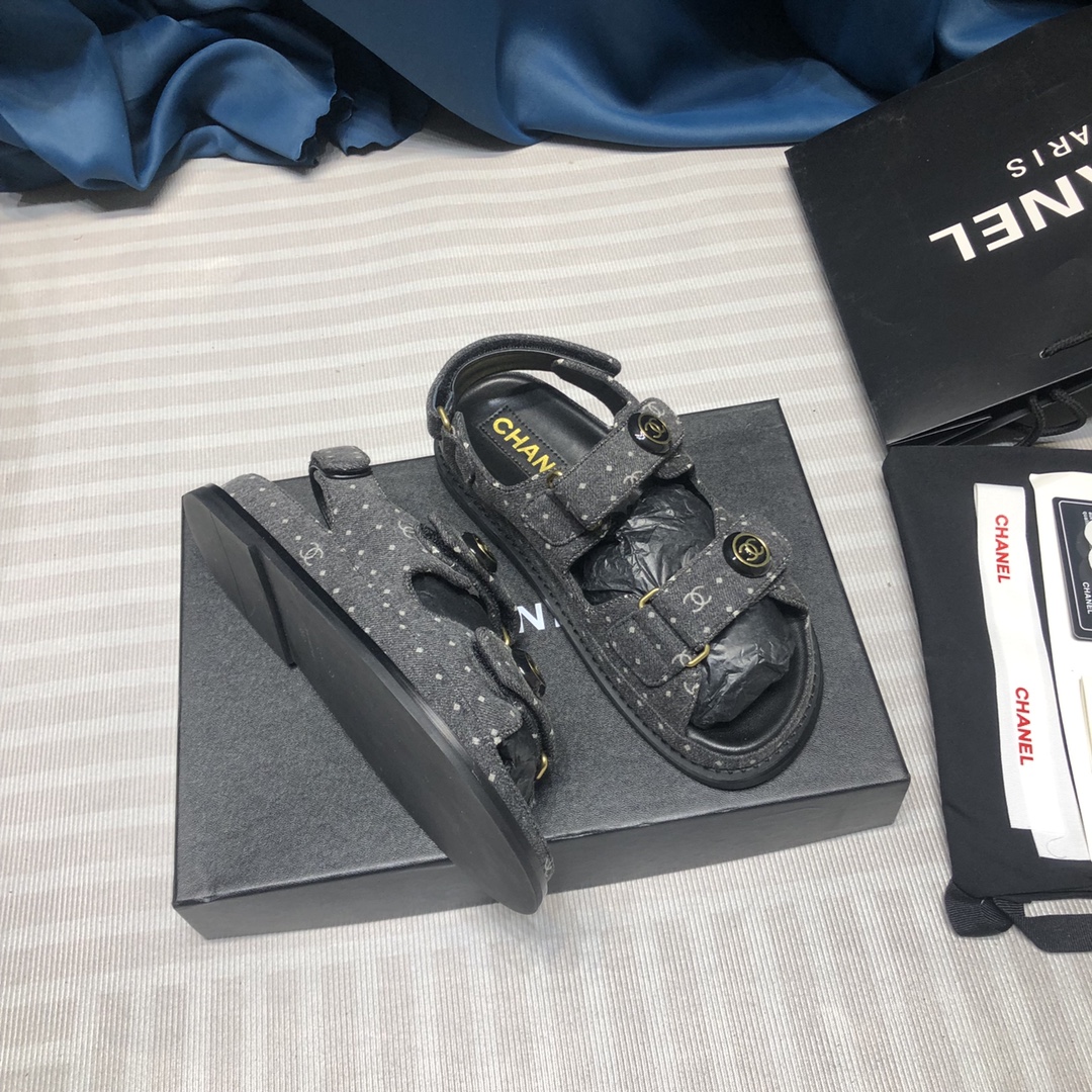 Factory PRICE ???? Chanel 2020ss new Velcro sandals, top counter quality (welcome ?? for comparison)?? ?? As Chanel 's classic shoe king, it' s a hot summer item every year. Once summer starts wearing flip-flops, sneakers will be put out of the cold! Haha Day patterns change a little every year, ?? Chanel Spring/Summer 2020 new double C Velcro casual sandals, ?? with more fashionable elements of Chanel added to the upper. ?? checkered embroidery. The upper is made of cowhide and the lining is made of sheepskin. It is comfortable and breathable to wear. It is very comfortable to put on and also very versatile. ?? SUPER COMFORTABLE sandals ON! Size 35-40 (custom-made 41)Chanel