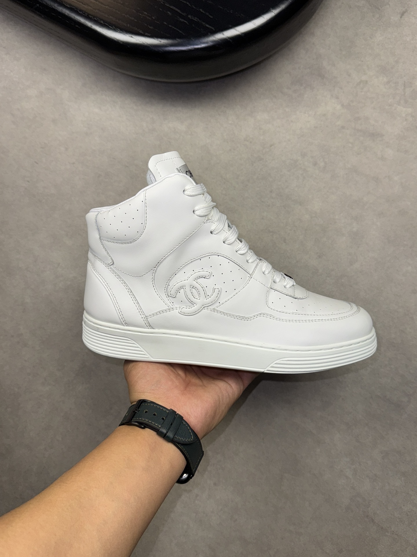 CHANEL #4009?????? - Premium quality ORIGINAL single ?????? casual high top sneakers - Upper: ?? silk calfskin with brand pattern stitching on the upper - Inside: Water-dyed sheepskin - Outsole: Ultra-light TPR