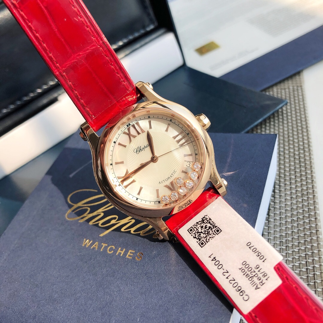 Chopard Happy Diamond Watch ? Big News ?? HAPPY DIAMONDS As Chopard's most popular and best-selling series, it has always interpreted the concept of Chopard's signature dynamic diamonds with delicate techniques. This series of works is soft and fashionable, allowing every woman to amaze the world with the most charming look. This time, we bring you the Chopard Happy Diamond series It is the most representative wristwatch under Chopard The seven diamonds of the most distinctive laminated glass Generating spin is like dancing It can be said to be a blessing for women's watches There is now a classic watch home except for the Ballon Bleu This Happy Sport stainless steel wristwatch is fashionable and gentle The iconic event features diamonds dancing joyfully and shining brightly A sleek and highly dynamic case And a modern silver dial It perfectly embodies Chopin's interpretation of the casual style The watch strap is also worth mentioning 100% American alligator leather strap Such as a fake bag The diameter of the mechanical dial is 36mm for large watches with 7 jewels and 30mm for small watches with 5 jewels! How LUXURIOUS Needs no more WORDS ? I would never recommend it to you without full confidence A truly blockbuster item If you can get ONE at such a bargain price, be secretly happy ?