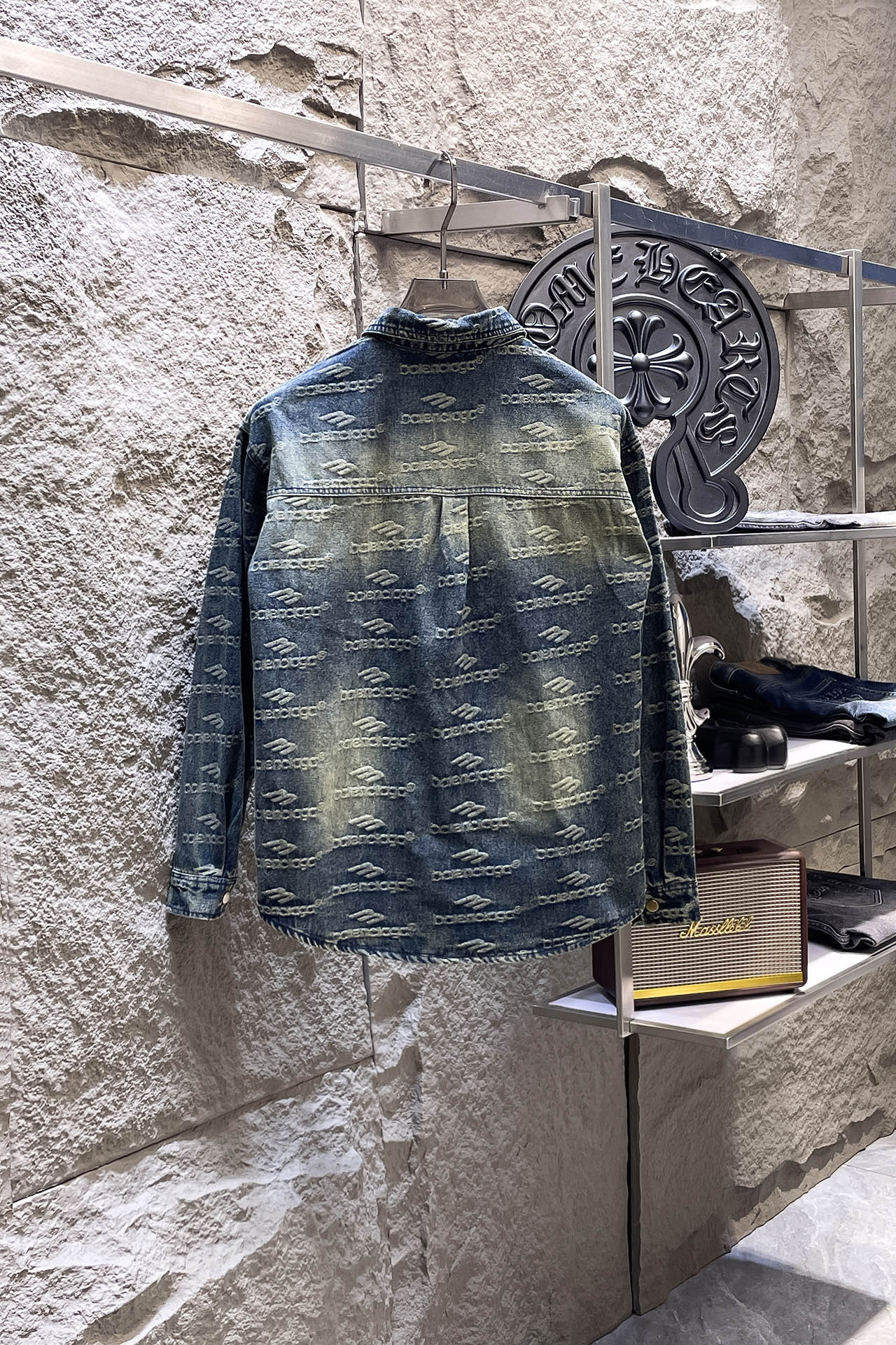 BALENCIAGA's long-sleeved shirt denim jacket is made of imported denim fabric, featuring a logo jacquard design and heavy washing. It is a blouses top jacket decorated with metal buttons, presenting a crisp and stylish look. With a unique Angle, it offers a fresh interpretation of fashion and is the top choice for all kinds of outfits! Size: M-3XL