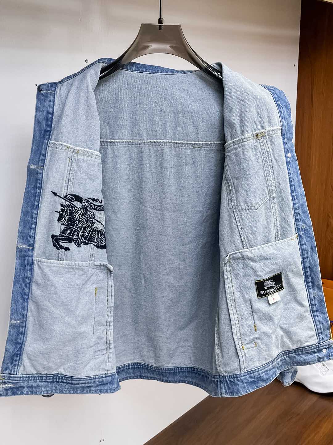 Burberry's new Spring 2025 fashion and casual denim jacket is made of imported original technological fabric. It is comfortable and breathable to wear, versatile and suitable for all men. It is a must-have for successful men in the fashionable city! The exquisite logo on the chest features a unique European fashion style with meticulous craftsmanship, highlighting the personality of young people. The original hardware accessories are of extremely high grade, making you look extremely cool when wearing it! Please report your height and weight when placing an order for M-3XL!