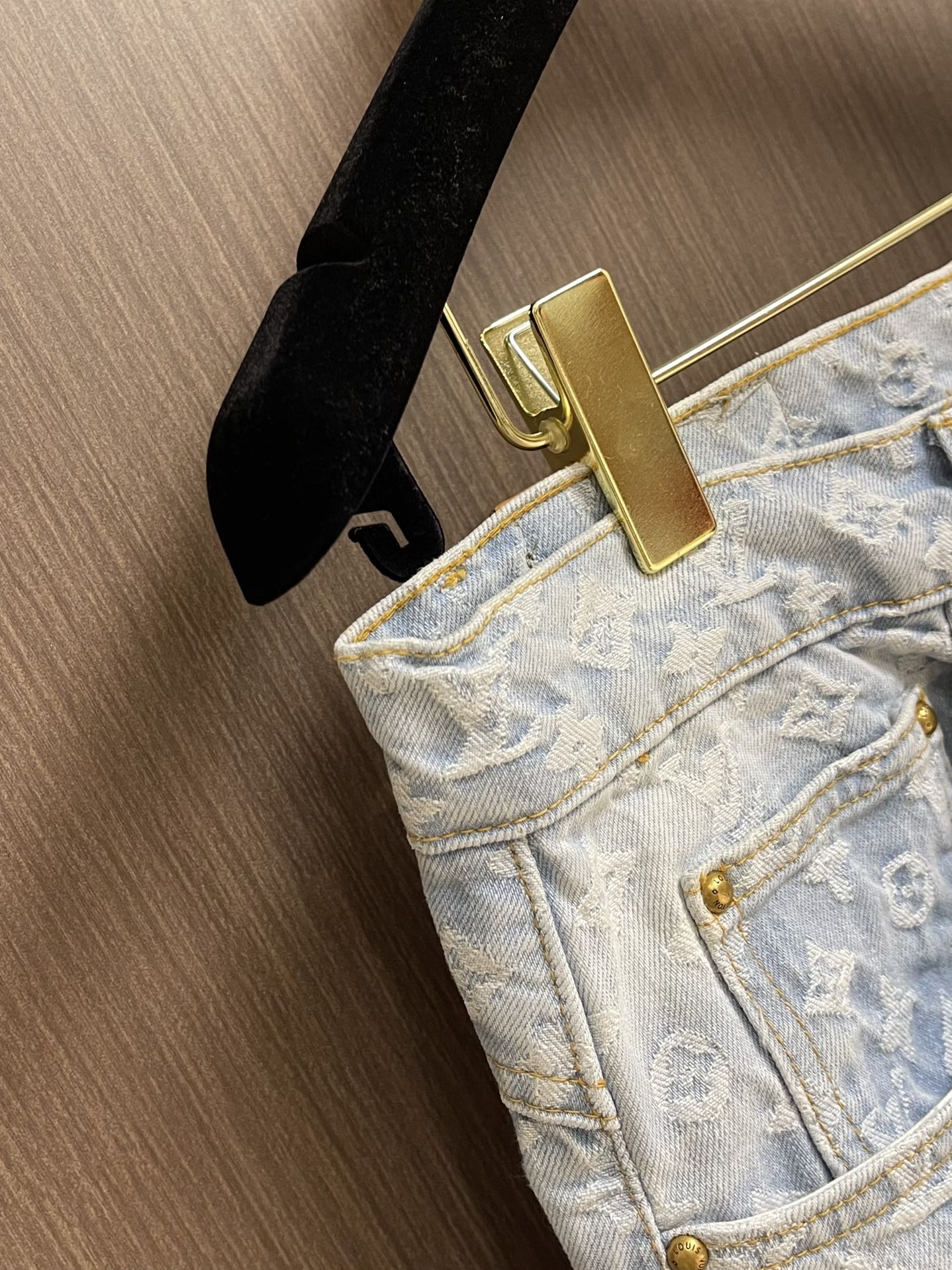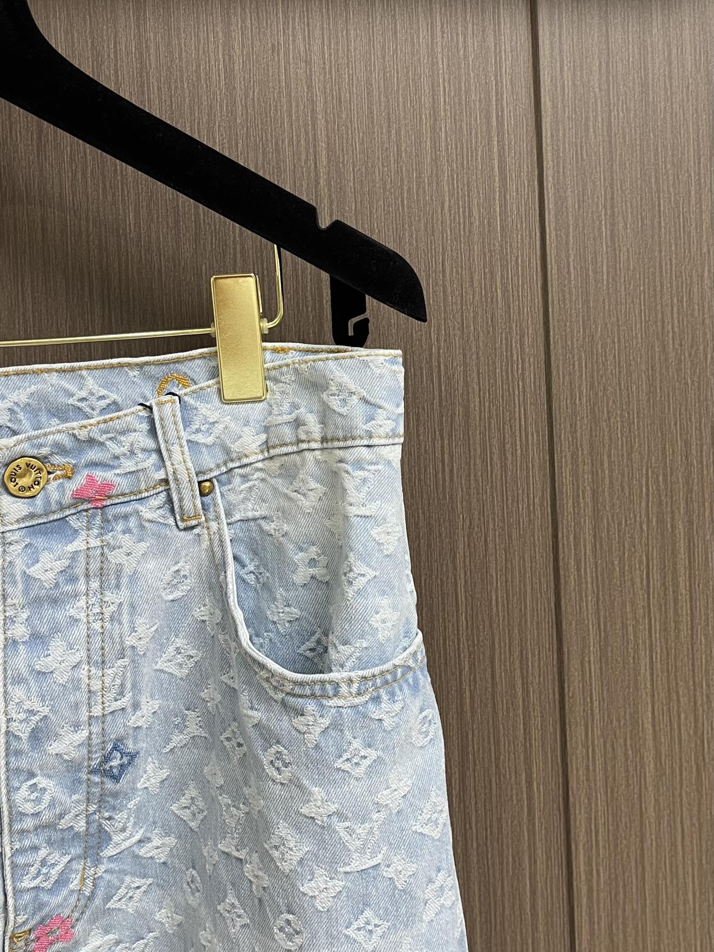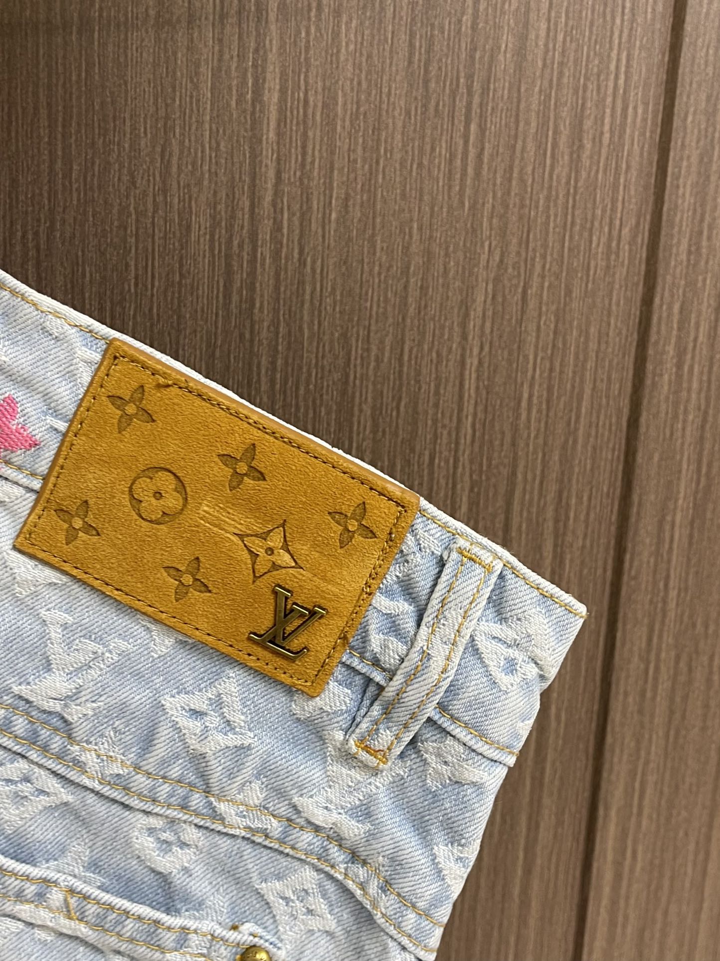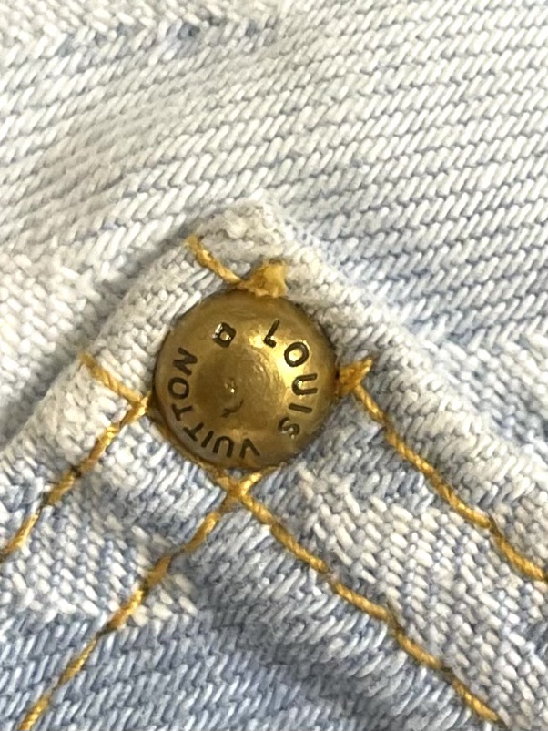 Top and jeans LV 2024ss tyler Collaboration Embroidered Long-sleeved Shirt and Jeans Set, tyler collaboration series. The original version is made of twill cotton jacquard denim material. The size and spacing of the jacquard patterns are the same, and the width of the patterns is consistent, giving it a rich texture. Washed and aged in a retro light blue color, the overall decoration is decorated with old floral patterns. After weaving, it is done with positioning color embroidery (blue, pink, yellow, fluorescent green). Four colors of yarns are adjusted multiple times to achieve perfect color matching. The monogram full logo and macaron candy-colored embroidered logo are both fashionable and high-end in craftsmanship. After the finishing process is completed, it enters the washing water. Spray the horse to make the fabric naturally fade and present a whitening effect. The back waist leather plate features a color-matched iron mold pattern and is made of genuine top-grain cowhide suede. The threshold is equipped with 1 large and 4 small process buckles for opening and closing with baked paint hardware buckles. The back pocket is made of suede color-matched mold suede badges. The entire set of new auxiliary materials is customized simultaneously, with perfect detail processing. Jeans: 30-32-34-36 Denim jacket: 46-48-50-52