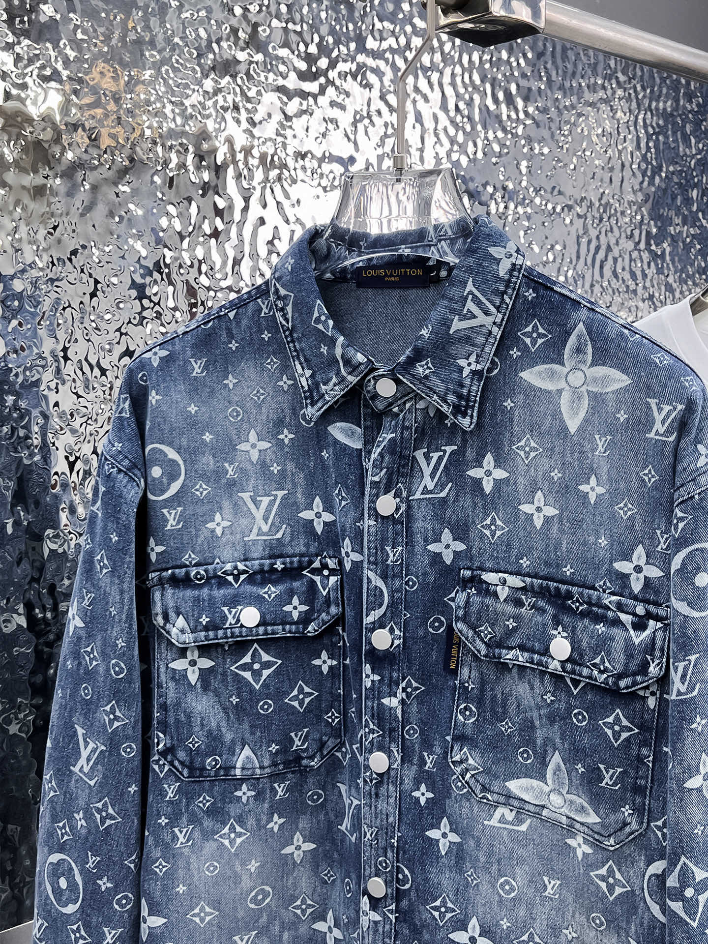 The long-sleeved shirt denim jacket is made of imported denim fabric, featuring logo jacquard and heavy washing. It is a shirt-shaped top jacket decorated with metal buttons, presenting a crisp and stylish look. With a unique Angle, it offers a brand-new interpretation of fashion and is a versatile choice! Size: M-3XL