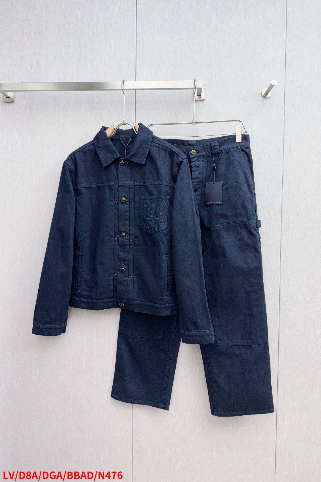 The N476 LV Louis Vuitton 25ss new Type II denim jacket features classic pleats on the front and creates a retro washed effect with ready-to-wear dyeing techniques. The chest bag is embroidered with Monogram patterns, and the pearlescent buttons and rivets add an elegant touch. It can be paired with the same style of cargo pants to create a summer look. Size: S-XL, all three specifications are complete and can be sold separately