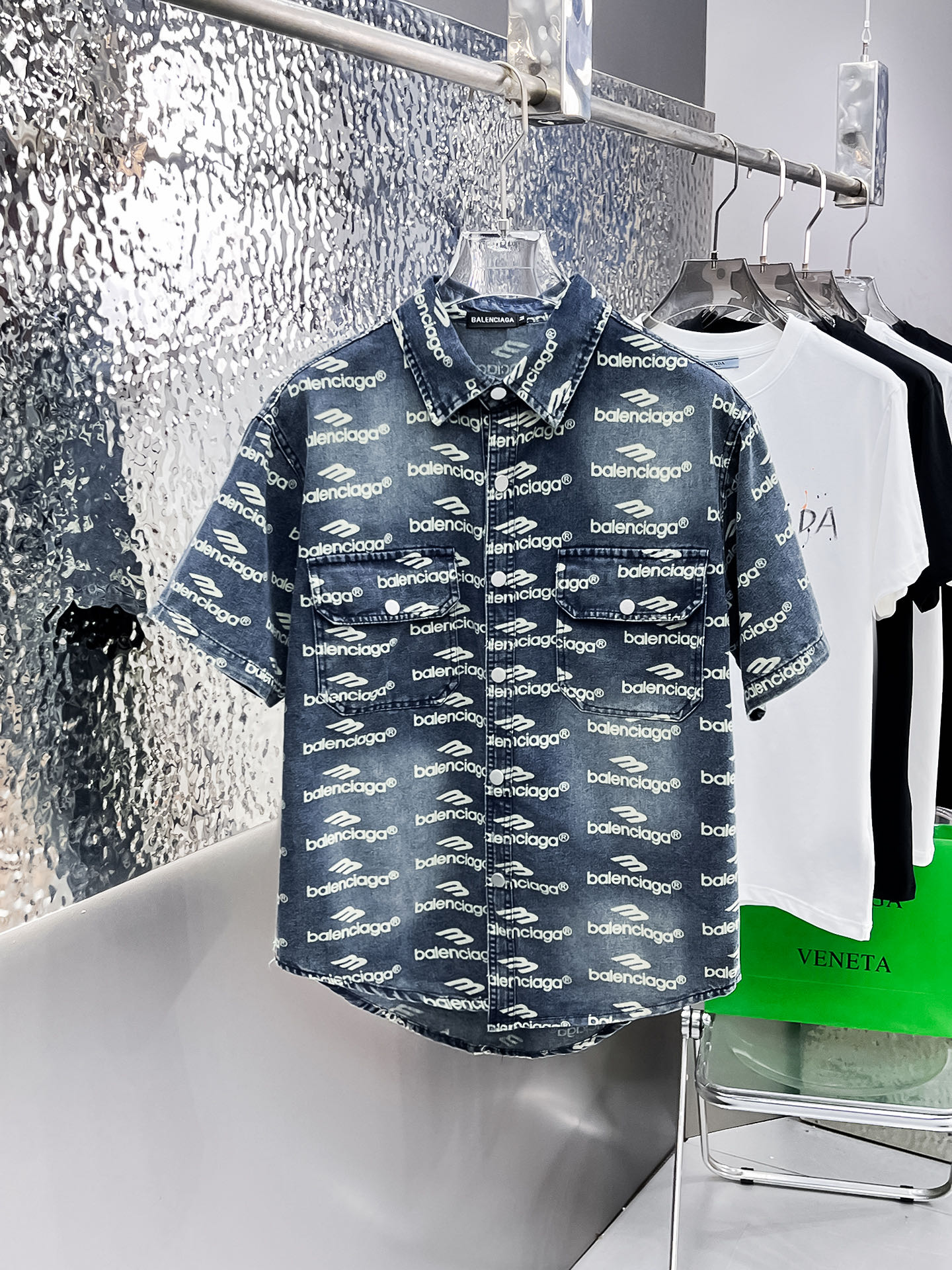 The Parisian short-sleeved shirt denim jacket is made of imported denim fabric, featuring logo jacquard and heavy washing. It is a shirt-shaped top jacket decorated with metal buttons, presenting a crisp and stylish look. With a unique Angle, it offers a brand-new interpretation of fashion and is a versatile choice! Size: M-3XL