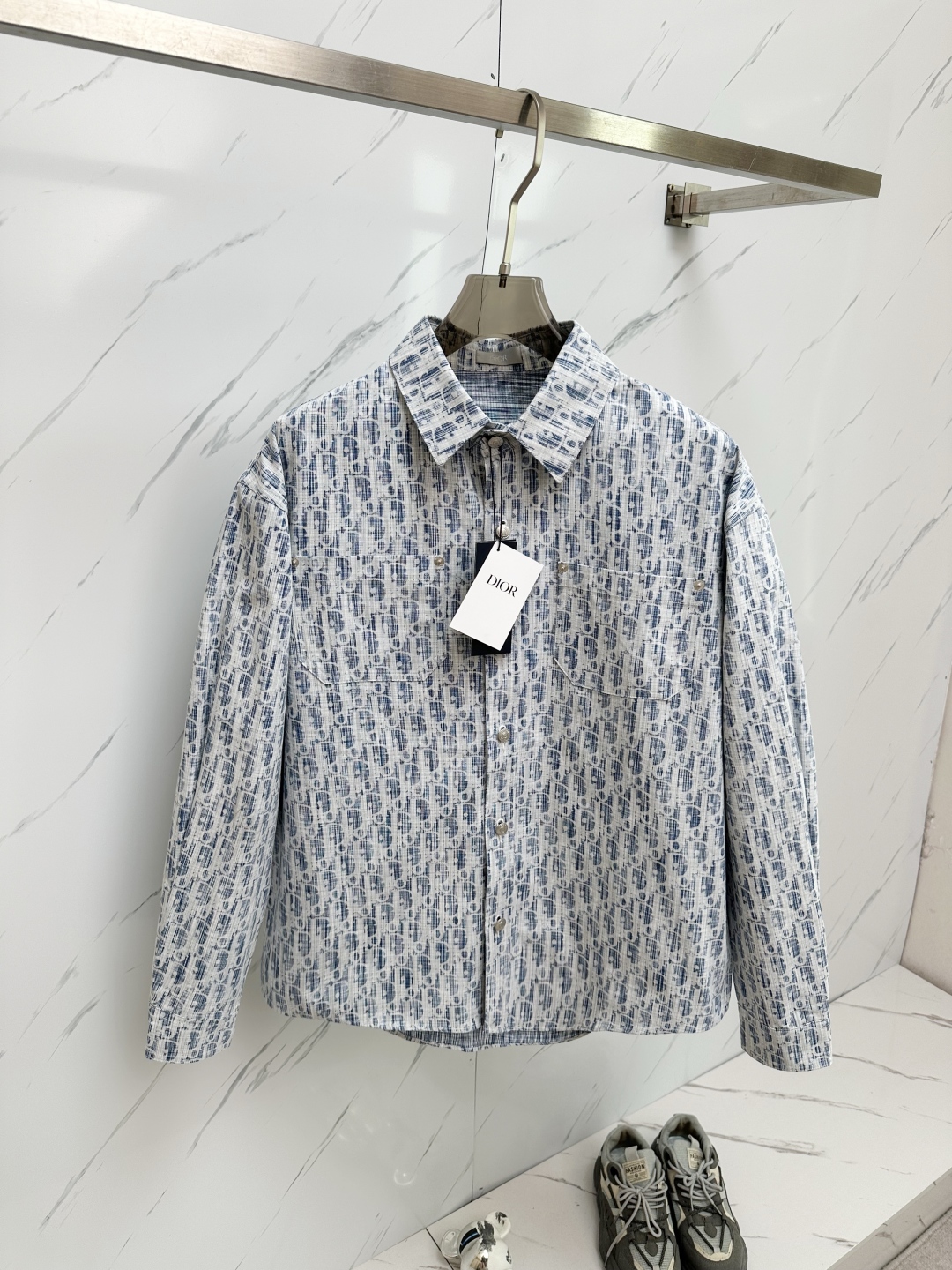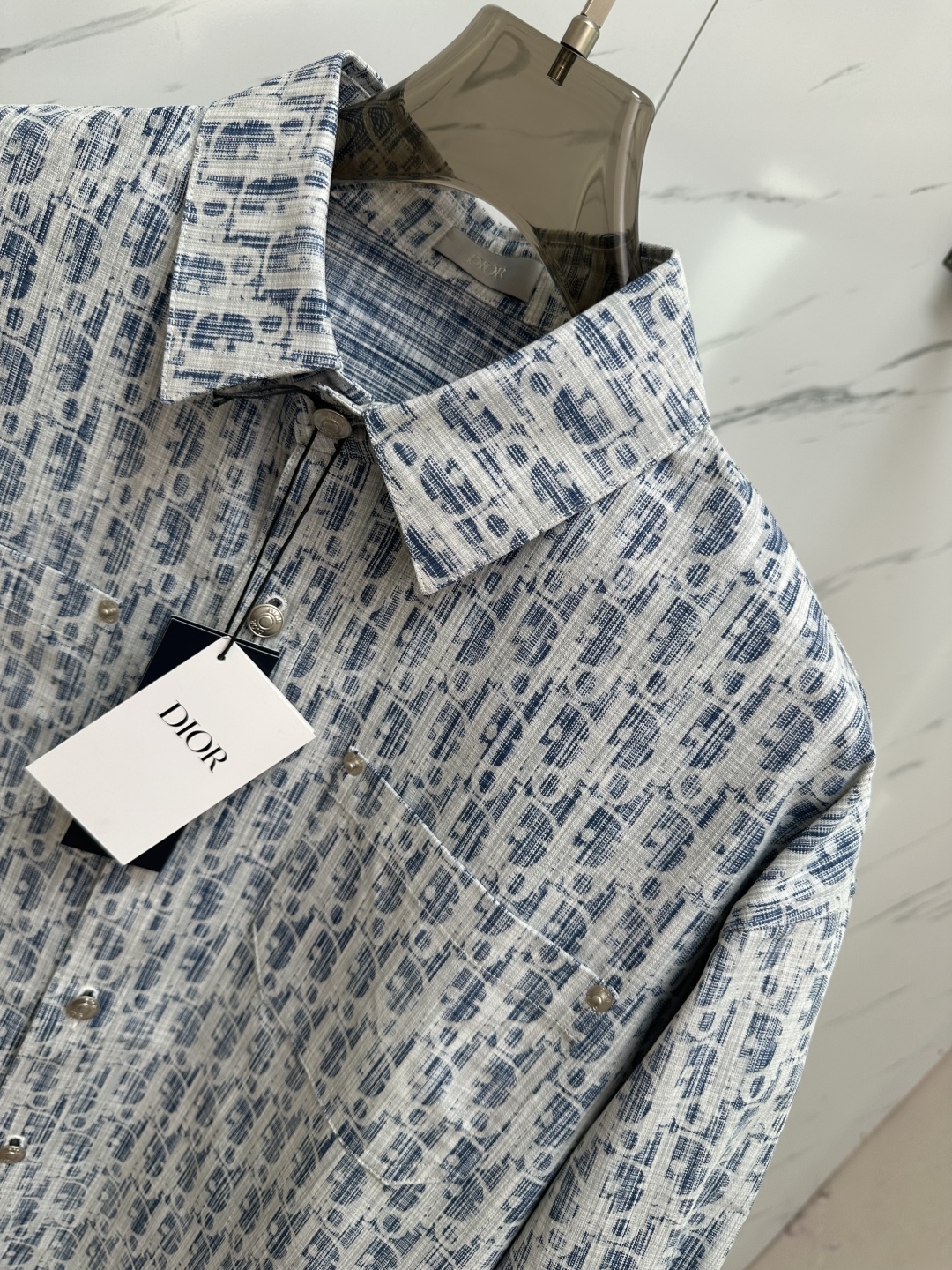 The high-end dior/ Dior Family CD 25 is a full-body dark-patterned monogram LOGO jacquard long-sleeved shirt and denim jacket Navy blue jacquard letter lapel cd classic logo design, cotton denim, custom high-quality hardware, unisex three-color black, blue and white, size: S-XL