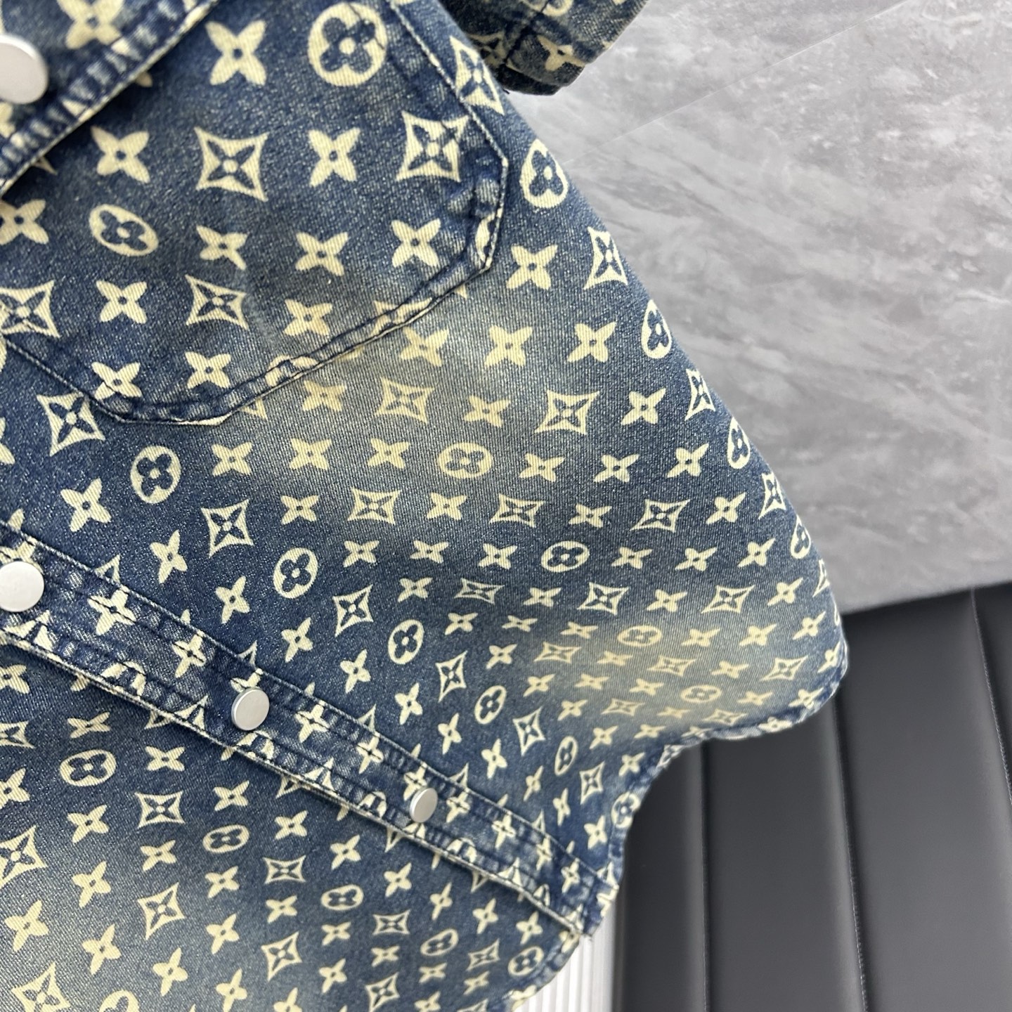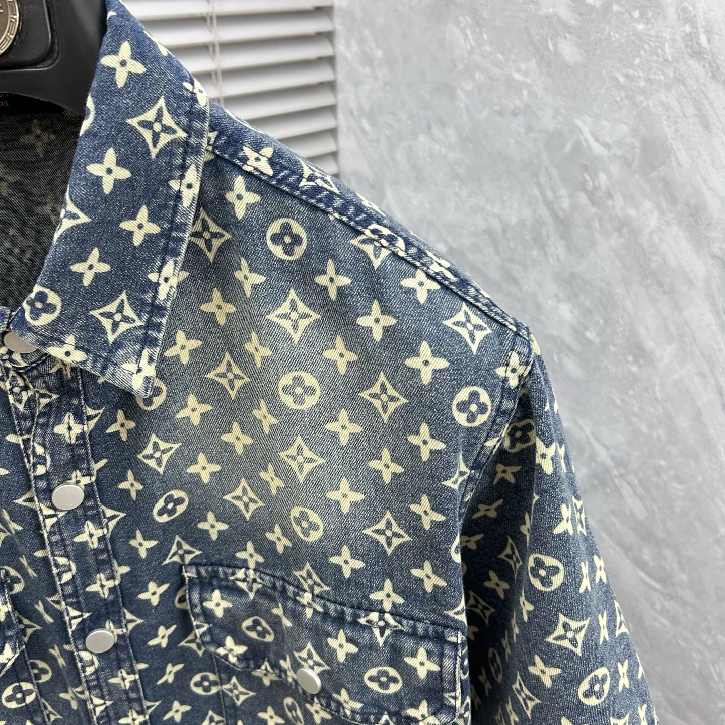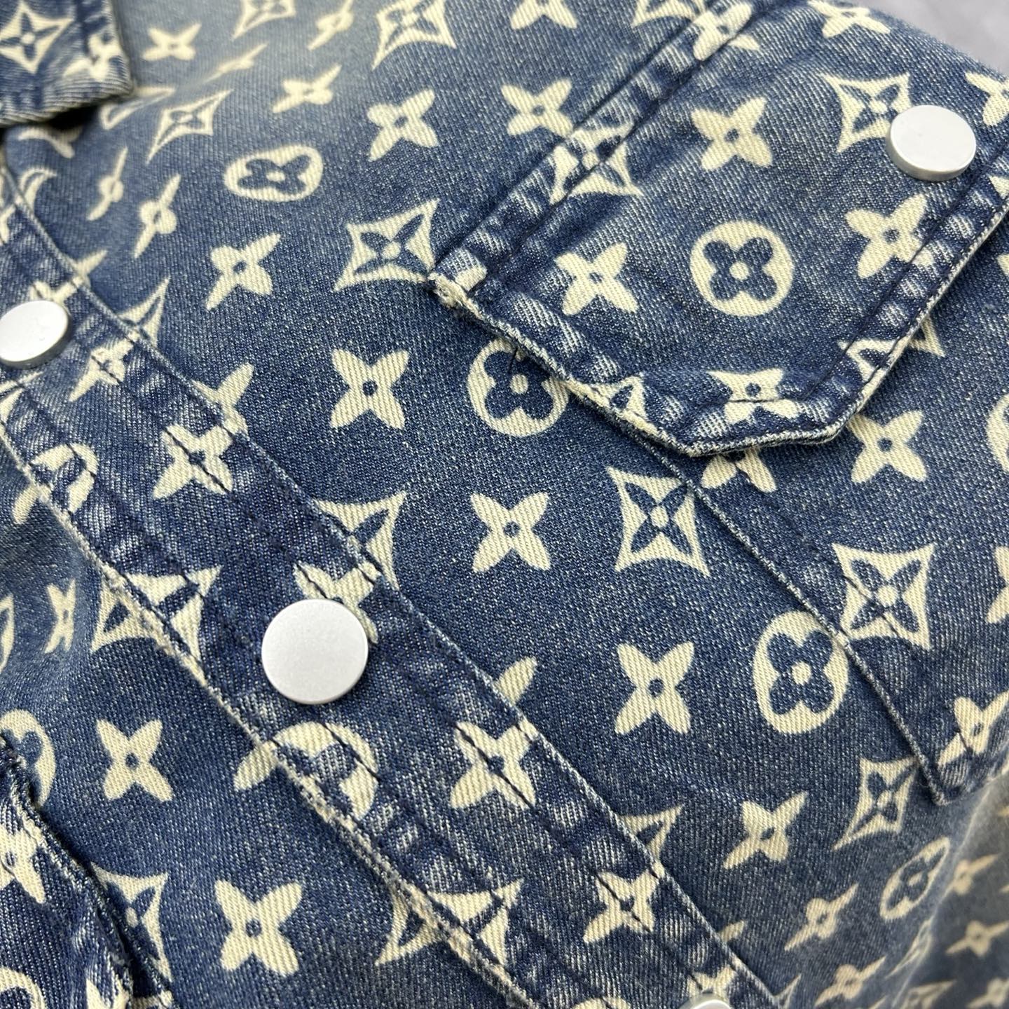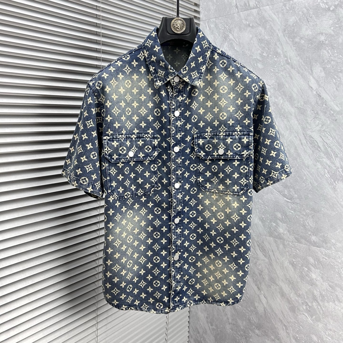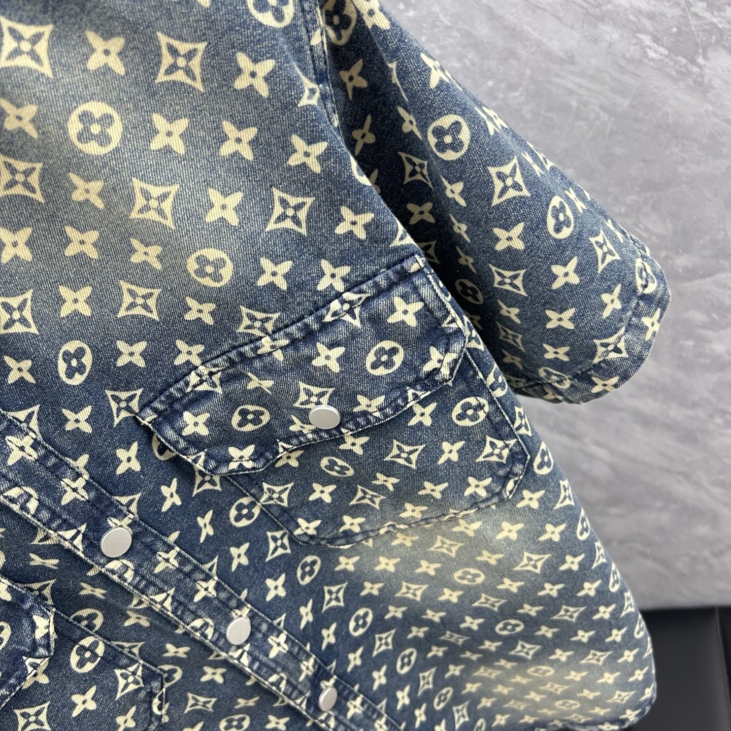 LV short-sleeved shirt denim jacket is made of imported denim fabric, featuring logo jacquard and heavy washing. It is a blouses top jacket decorated with metal buttons. It is crisp and stylish, with a unique Angle that reinterprets fashion and is a versatile choice! Size: M-3XL