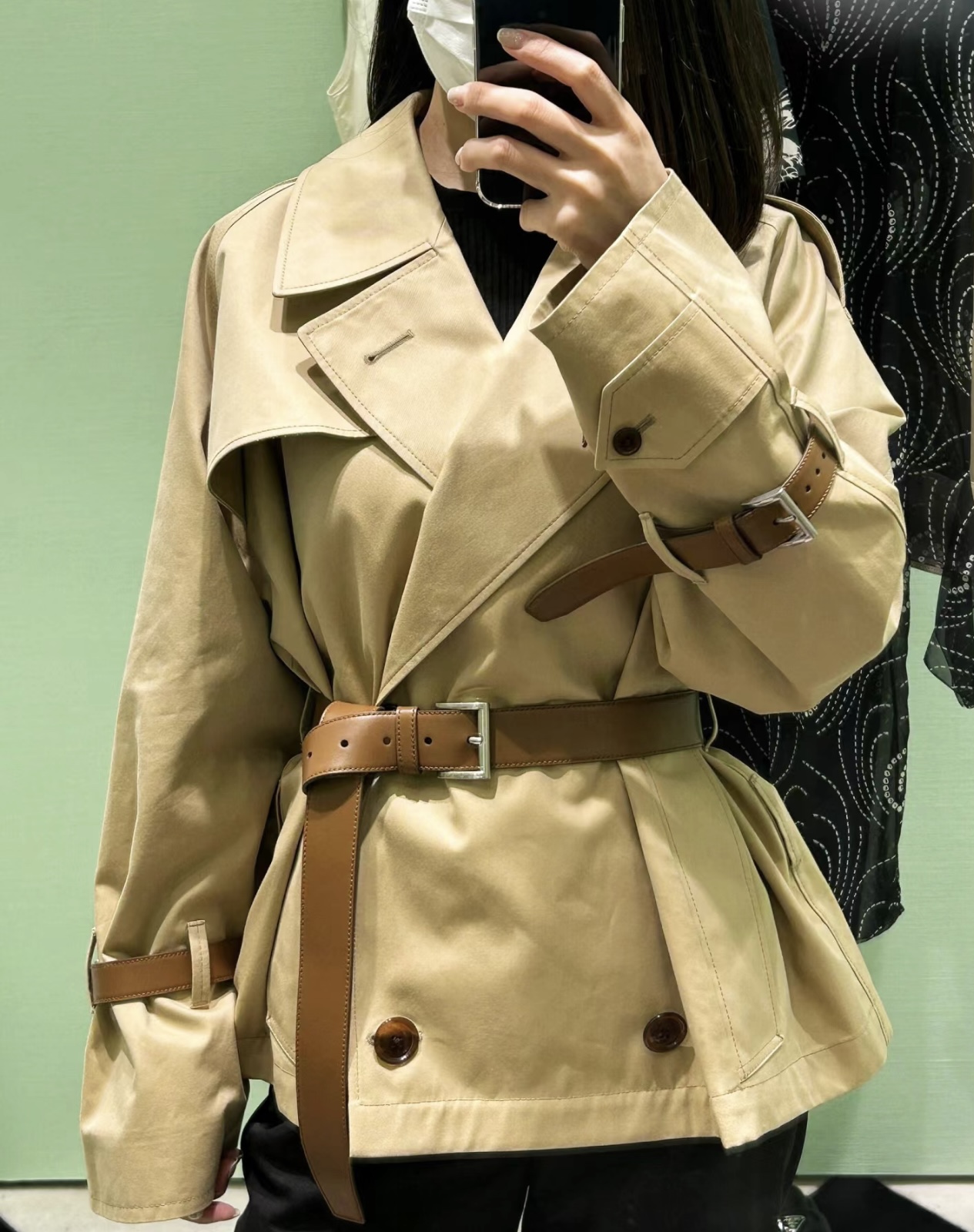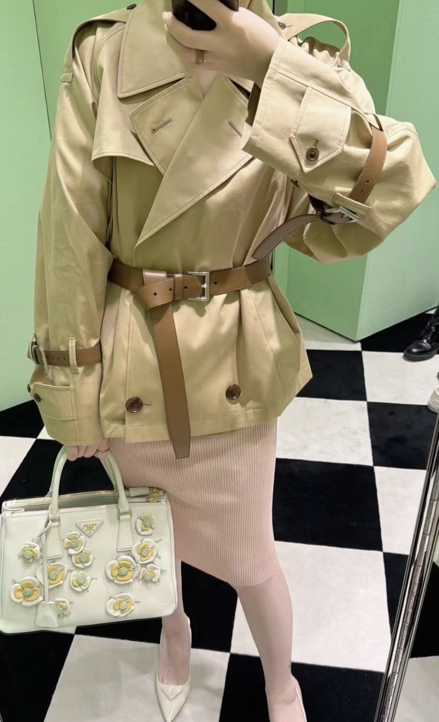 Prada/ Prada 24Fw corset short belt Trench coat (Women's style) Wearing effect #