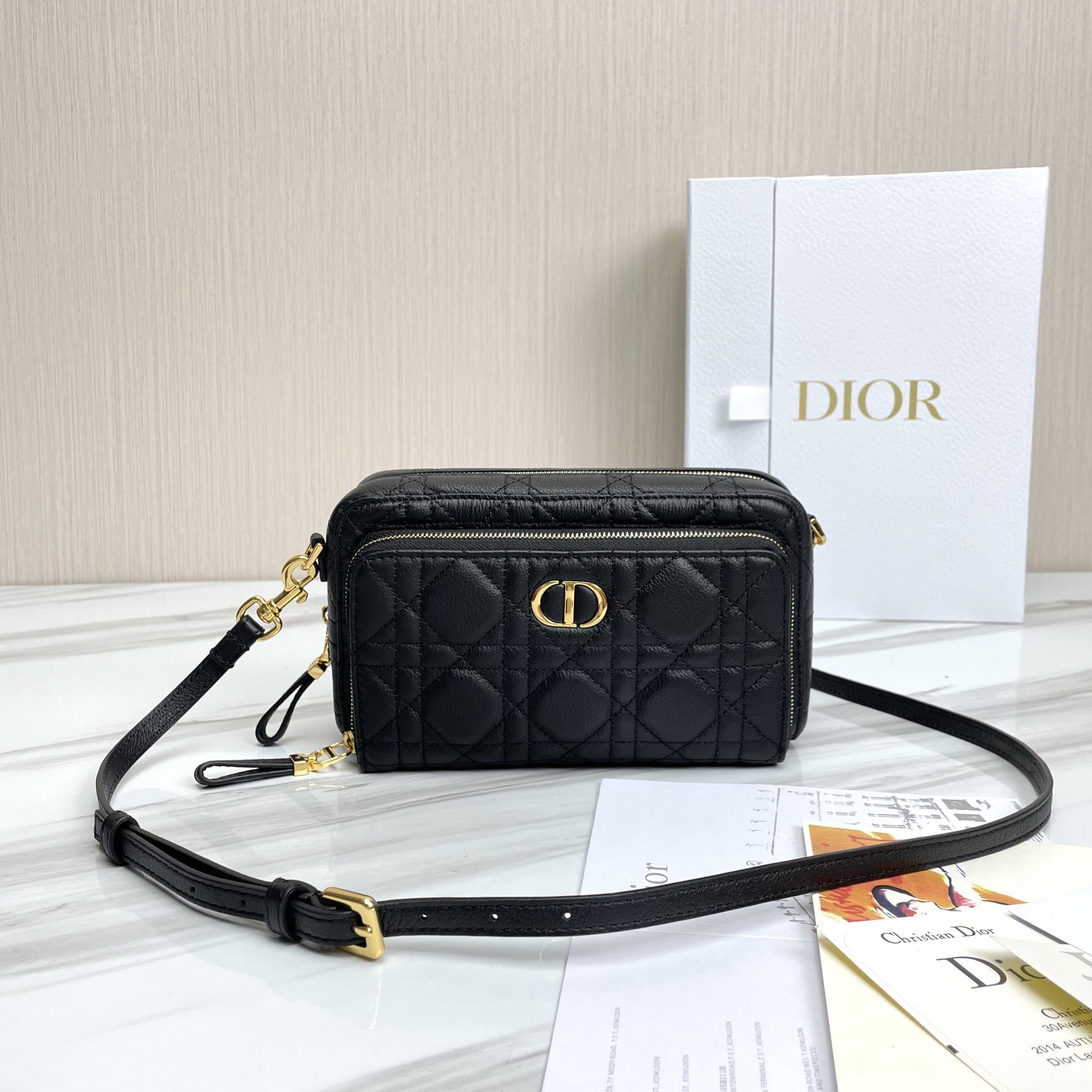 Dior Double layer three use blue Black in stock ? ? Caro 's latest double-layer clutch ?? Double-layer design with large capacity, your phone, wallet and air cushion can all be easily stored ?? with detachable, adjustable shoulder straps, it can be carried by hand, over the shoulder or crossbody. Super FINE soft cowhide DURABLE GRIND recommended ?? Size: 19 *10.5 x*5 cm