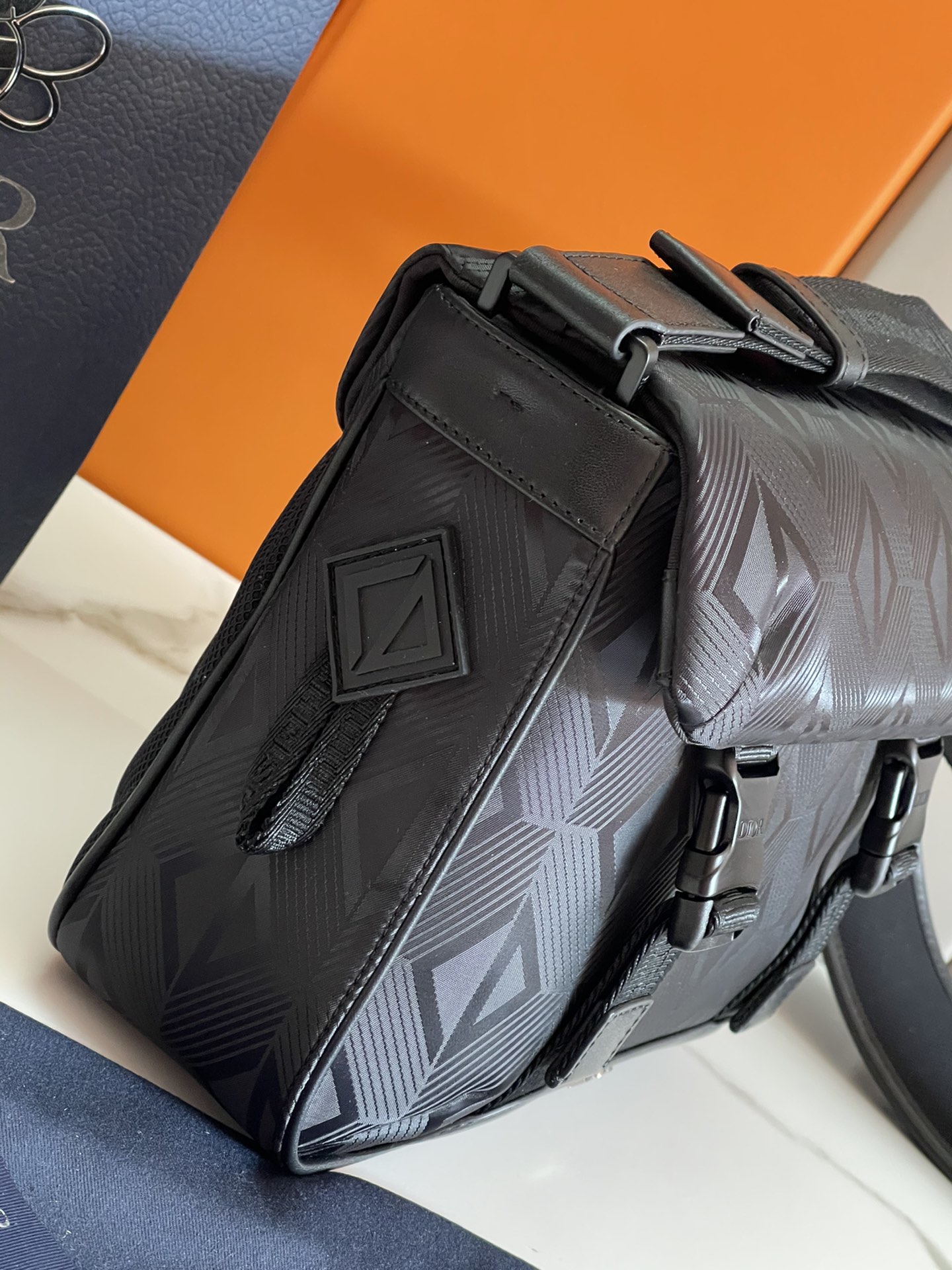 This top-of-the-line Dior Explorer handbag, paired with a shoulder strap, is the new release of this season. Inspired by the classic Messenger bag element, it reinterprets the classic design of the Dior Men's ski limited edition collection. Elaborately crafted from black nylon, decorated with the CD Diamond Mirage Ski Capsule pattern, paired with smooth cowhide leather trim, and embellished with rubber patches featuring the CD Diamond Ski Capsule logo on the side, it is unique. The flip cover is paired with a zipper pocket and features a striking purple inner lining, allowing for the storage of various daily necessities. The style is practical. Paired with an adjustable Christian Dior logo shoulder strap decorated with padded leather inserts, it can be matched with various casual items and serve as the finishing touch of the look. Black nylon CD Diamond Mirage Ski Capsule pattern The CD Diamond Mirage Ski Capsule patterned nylon is crafted from technological fabric and decorated with the CD Diamond pattern, highlighting the rainbow colors and reflective effects to enhance the style and showcase Dior's exquisite craftsmanship Black smooth cowhide leather The Dior logo is clad in brass on the front The side is decorated with a rubber CD Diamond Ski Capsule logo patch The inner side is decorated with the Dior embossed logo The flip lid opens and closes with a Dior logo clasp The adjustable Christian Dior nylon jacquard shoulder strap is decorated with padded leather inserts There is a zipper pocket under the front flip cover The back is reinforced with padded mesh fabric and paired with the CD Diamond Ski Capsule logo Dimensions: 31 x 21 x 8 centimeters (length x height x width) Number: 2ESWS 8019 Black Nylon