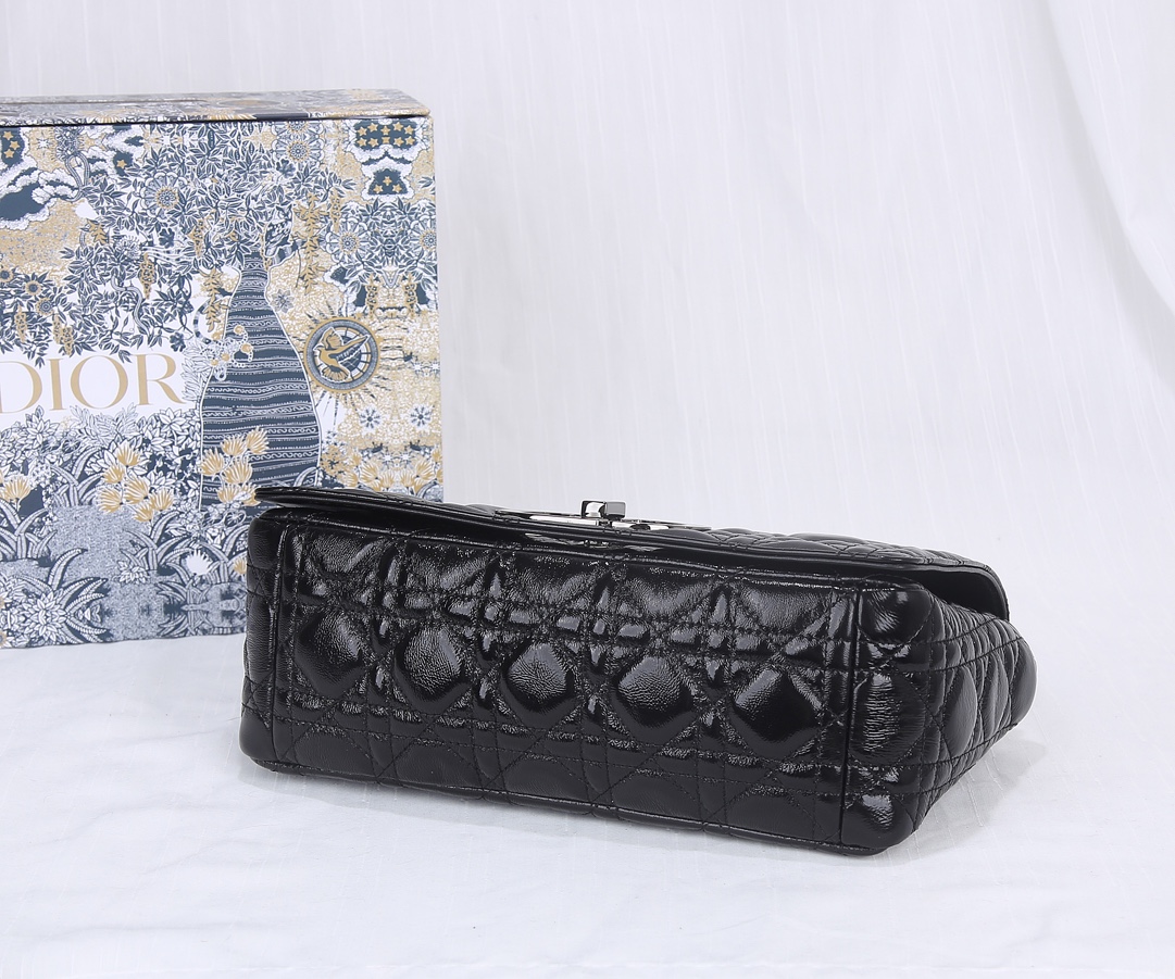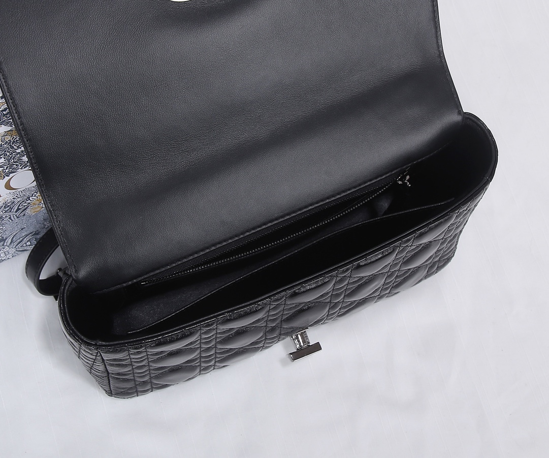The new mid-sized crepe leather from Dior The Dior Caro handbag is elaborately crafted from black wrinkled leather and decorated with the signature rattan checkered stitches. The material is soft. The flip cover is decorated with a retro gold finish metal "CD" clasp, inspired by the seal of Christian Dior perfume bottles. The small-sized style comes with a detachable signature "CD" chain shoulder strap, which can also be replaced with an embroidered wide shoulder strap for a more elegant and fashionable look. Whether it's a daily look or a dinner party Dimensions: 25.5x15.5x8CM