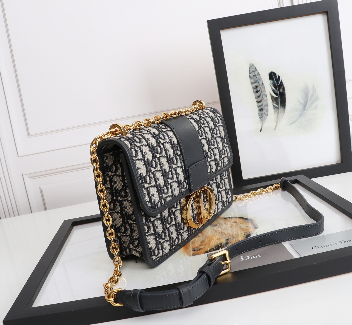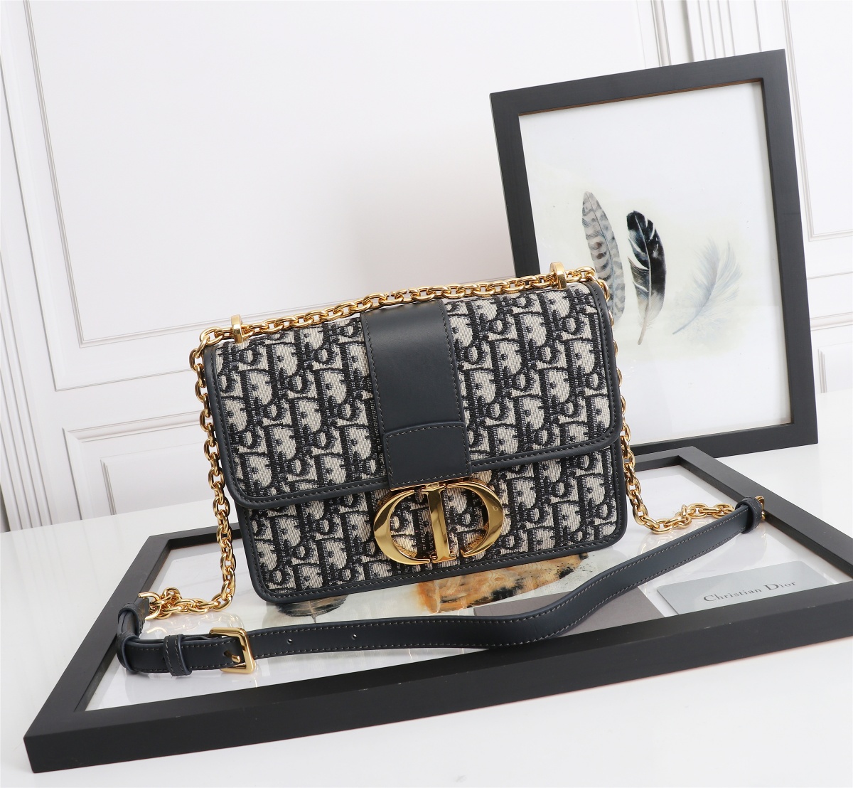 Dior's top imported original factory embroidered Montaigne iron chain crossbody bag 30 Montaigne chain deep blue Dior Oblique jacquard canvas flap handbag, with CD letter clasp. ?? features deep blue cowhide details, ? gold vintage metal accessories with 30 Montaigne embossed decoration on the back of the shoulder strap. Shoulder or crossbody, model: D6808, size: 24 x 17 x 8 cm, ?? exclusive real photo ???2020550