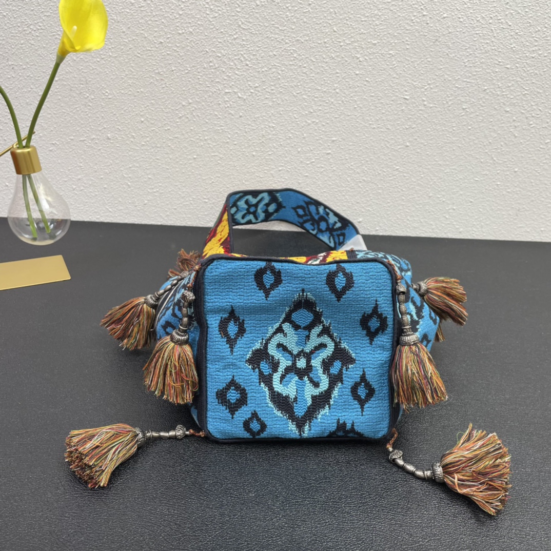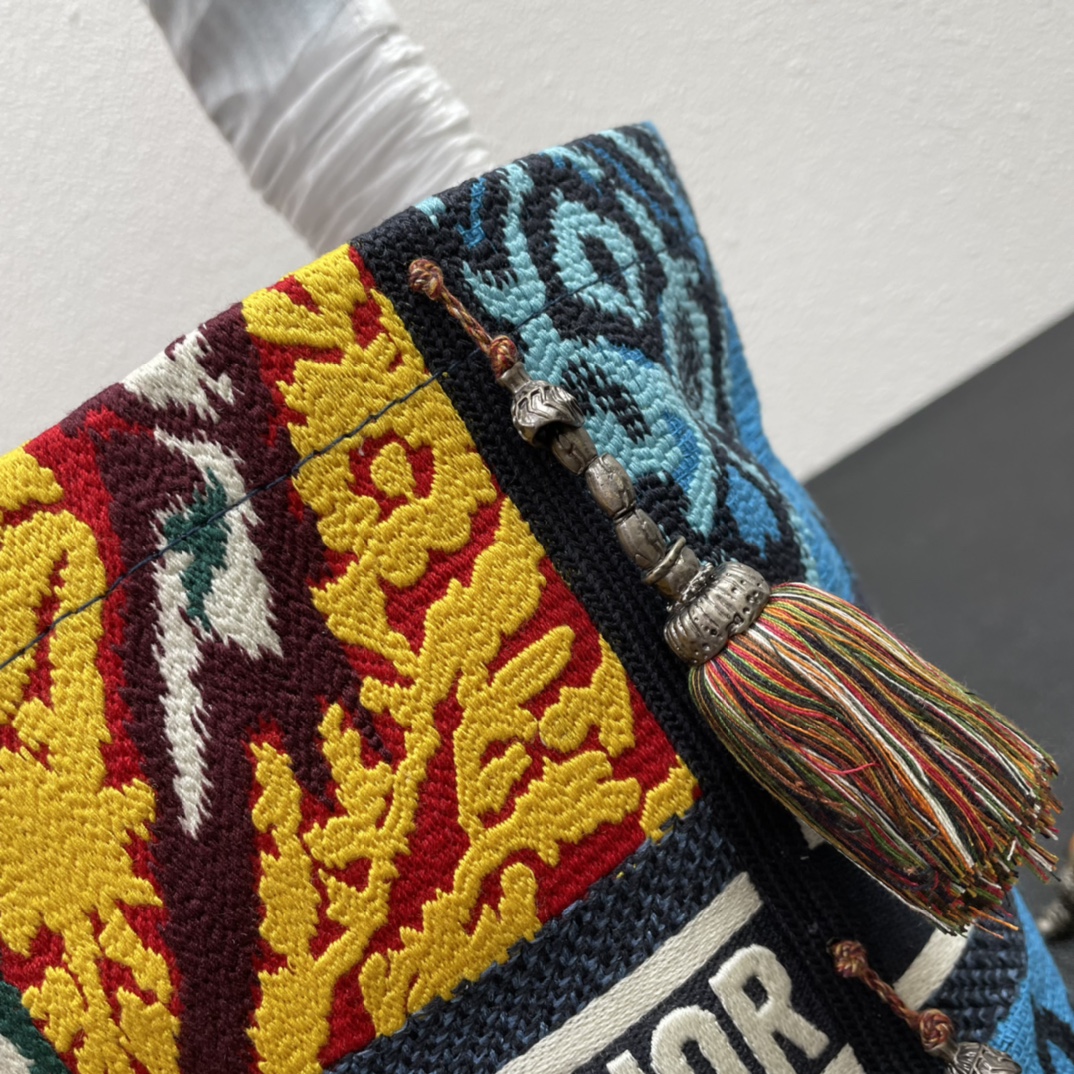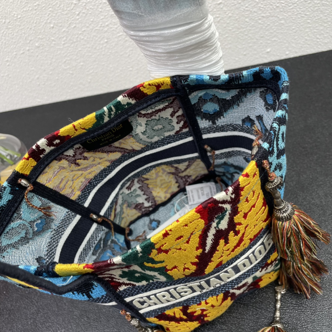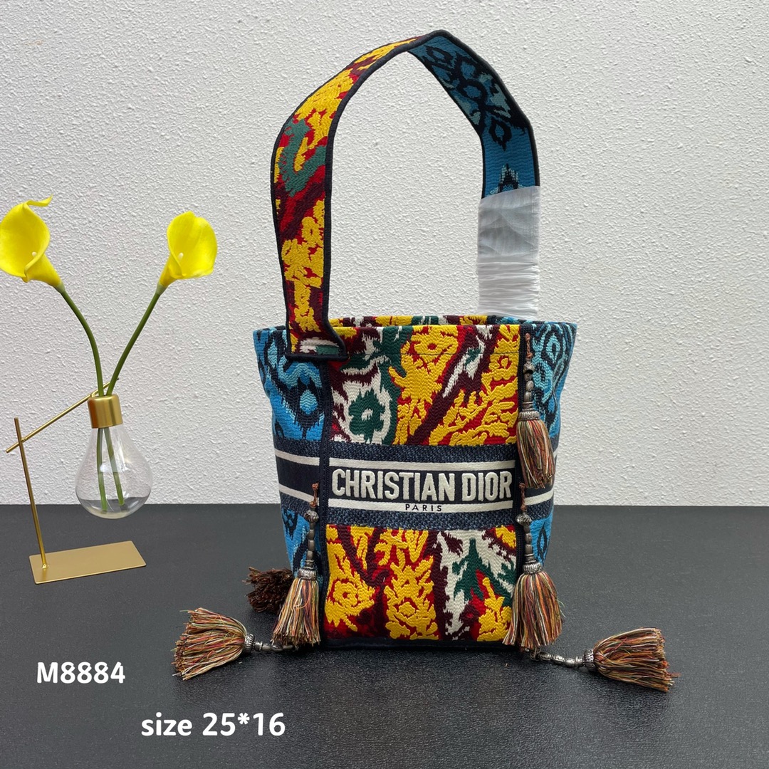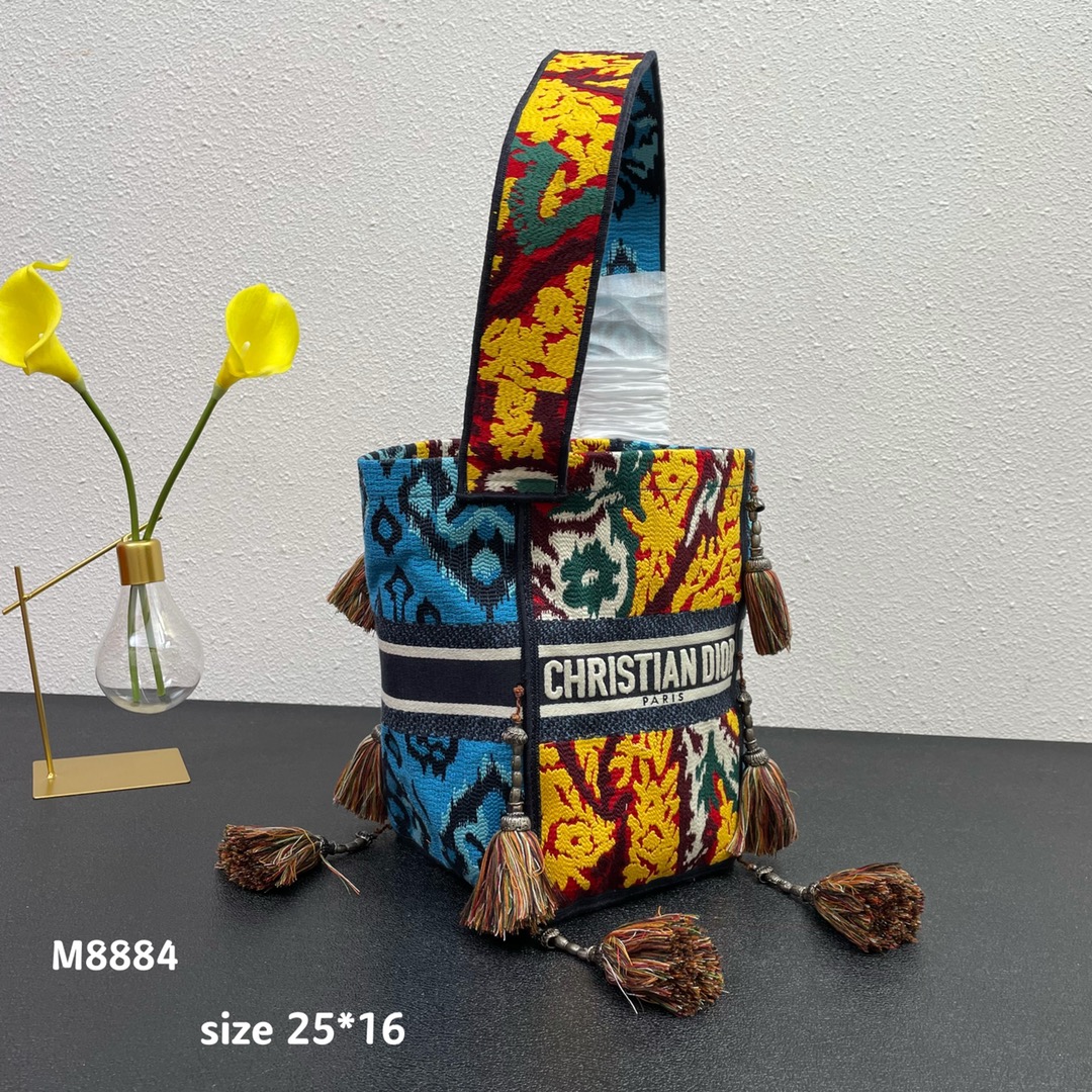 The original single Dio*r new D-bubble fringed bucket bag has arrived. The entire body is decorated with multi-shaped striped embroidery to create a hollowed-out effect. It is paired with the Christian Dior logo. The wide shoulder strap, handcrafted plush ball, and retro silver metal make it even more noble and fashionable. It can be carried by hand or over the shoulder. M8884# size: 16*25*16