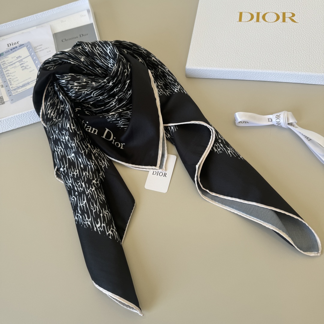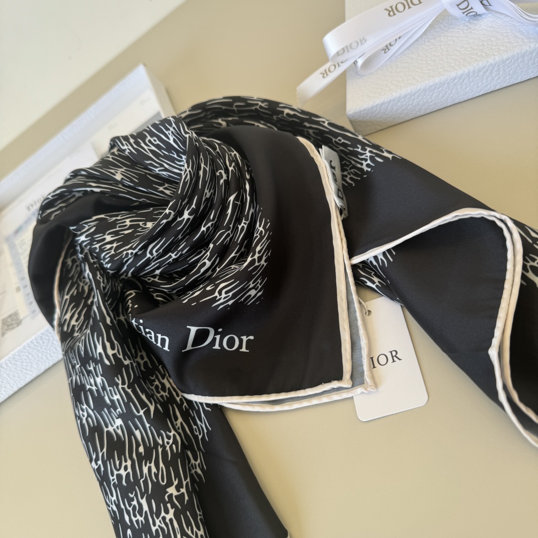 Dior new 90cm silk handkerchief, original single top-quality twill silk material, creating a baby-skin-like feel, most precise printing in the industry, rich and full colors ?? all year round super practical ?? hand-curled edges Specification: 90x90cm. 100% twill silk