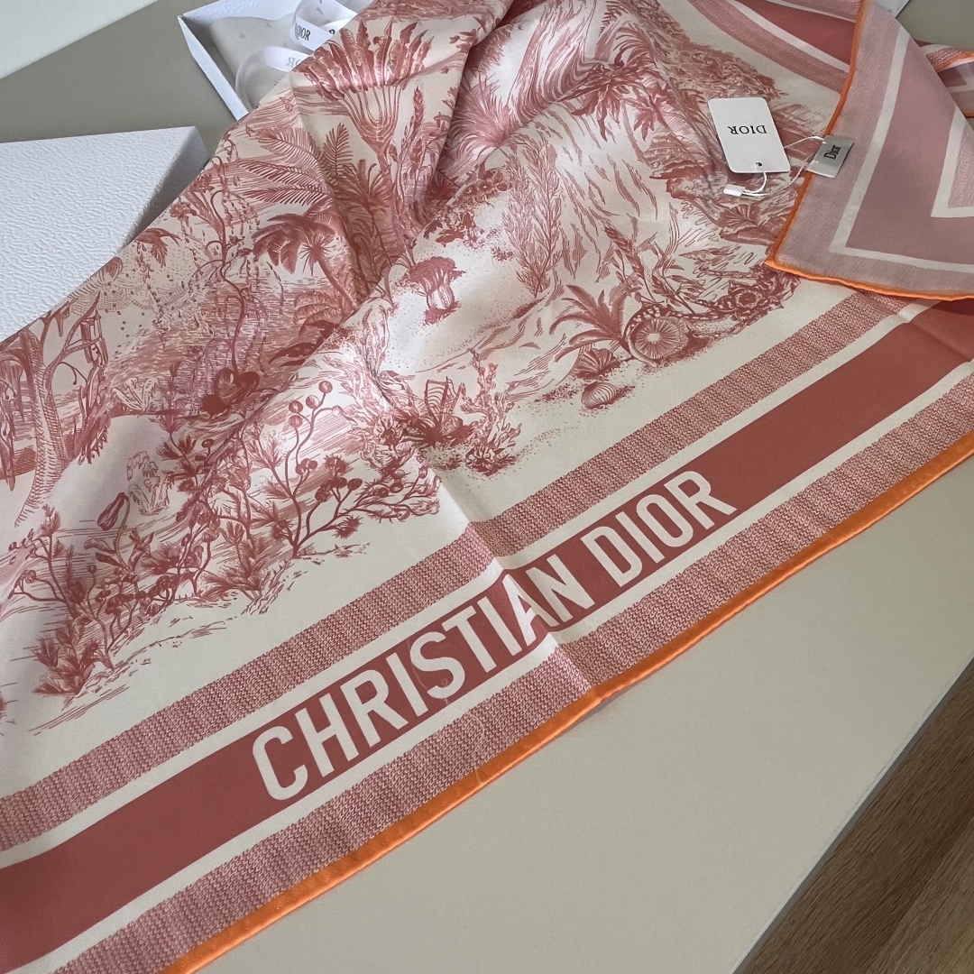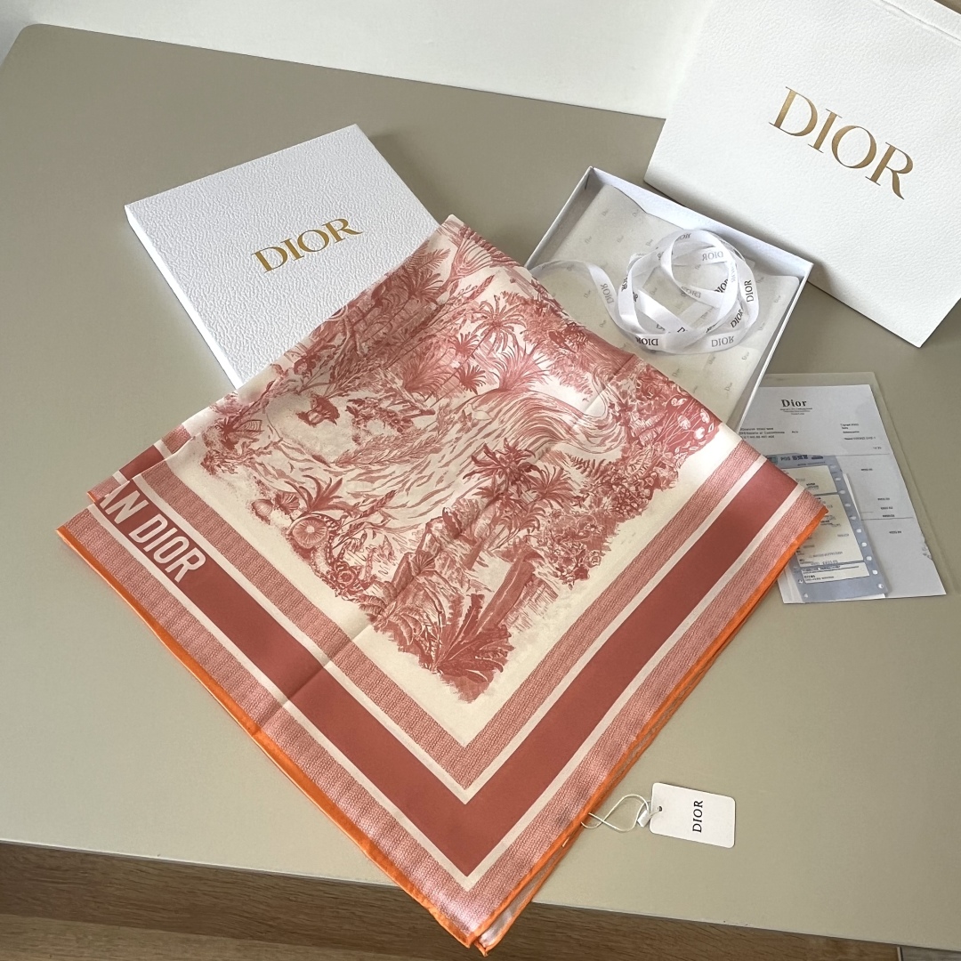 Dior Jungle hand-painted handkerchief size: 90x90cm Material: 100% silk The mystery of the tropical jungle, the leisure and ease of wild animals... A masterpiece of craftsmanship, stroke by stroke!