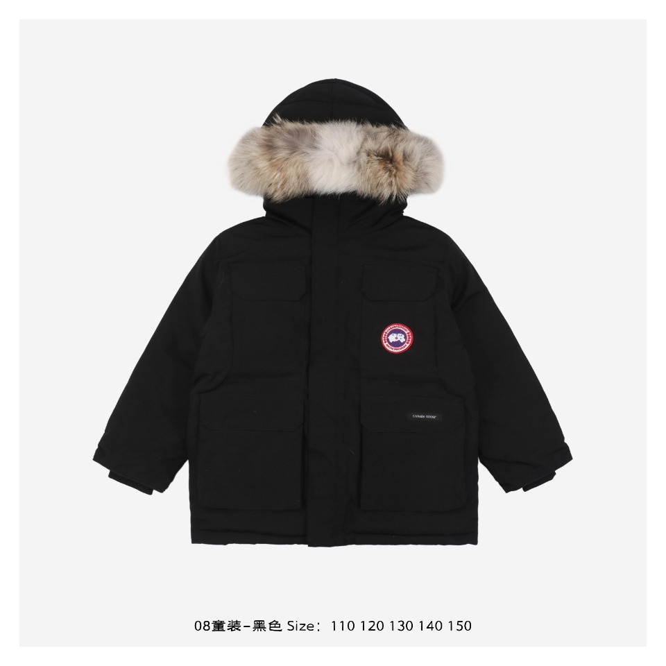 08 Children's Clothing - black The Expedition Park for teenagers inherits the original design of cold resistance and durability, allowing your little explorers to also experience excellent warmth retention. It features an internal drawstring at the waist for easy adjustment of tightness, providing excellent warmth. The detachable and adjustable hood and fur collar come with a shaped steel ring to withstand strong winds. The wool-lined chin protection element The Expedition grip strap in the middle of the back is comfortable and warm. External pockets: 4 two-way pockets, 1 multi-functional pocket on the left sleeve, 1 flip pocket on the right sleeve. Internal pockets: 1 pocket with a zipper, 1 drop-in pocket. The storage nylon elastic snow skirt adds more protection Size: 110 120 130 140 150