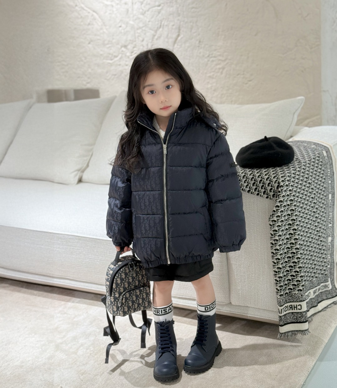 Dior, high-end children's clothing, down jackets for both boys and girls, classic monoprint, detachable hat design, custom-woven jacquard fabric with clear and fine texture, excellent hand feel, fabric craftsmanship with inherent water-repellency, filled with new national standard 90 white duck down, good rebound and throw, good down can be flattened - after blending with air - and will regain throw within normal time Both fabric material and the overall outline, with fashion design sense and good effect of warm, and comfortable wearing experiences and feelings, men and women with money, winter fashion must-have, upper body to keep warm, comfortable, code number: 110/120/130/140/150/160 cm