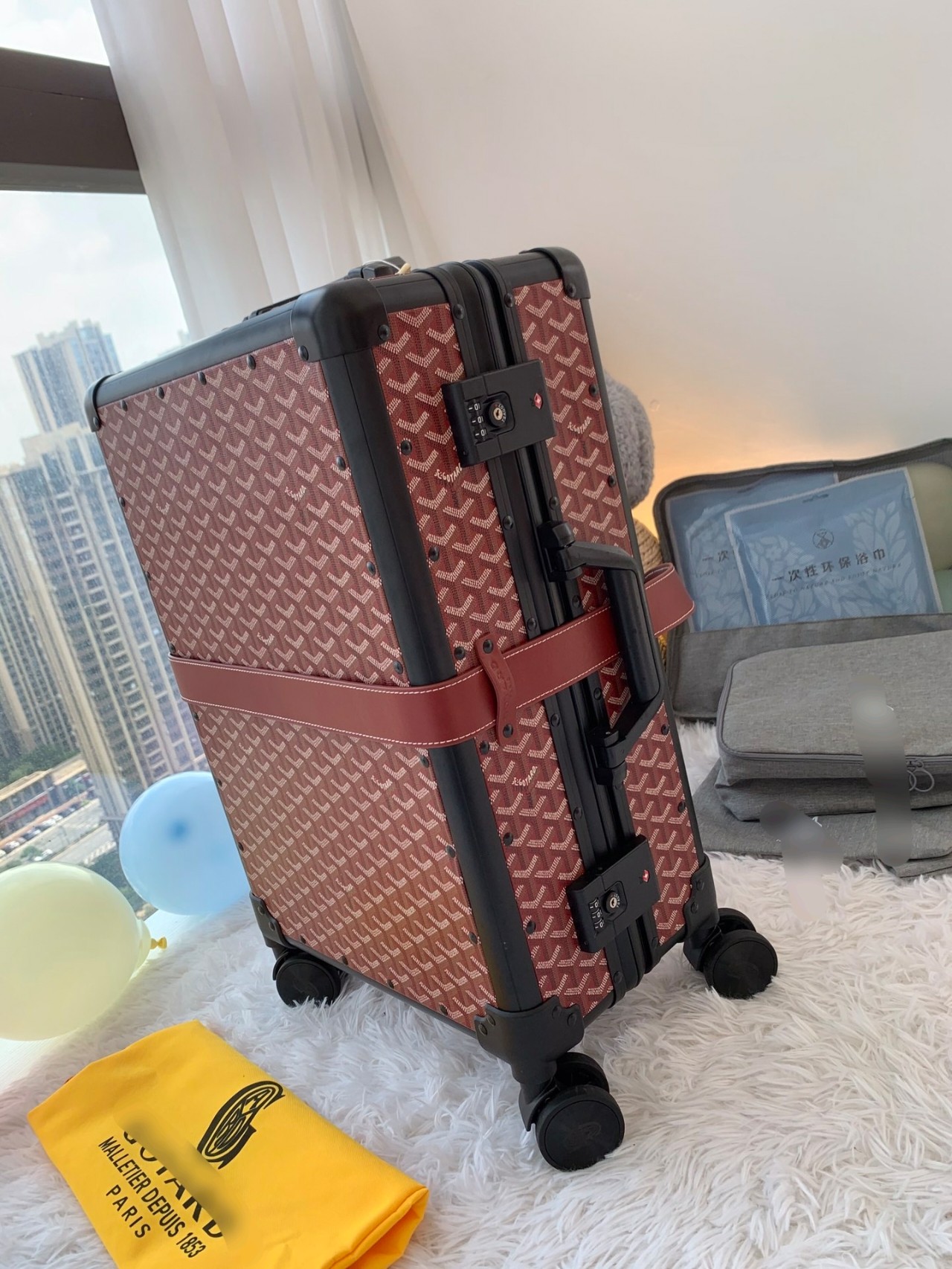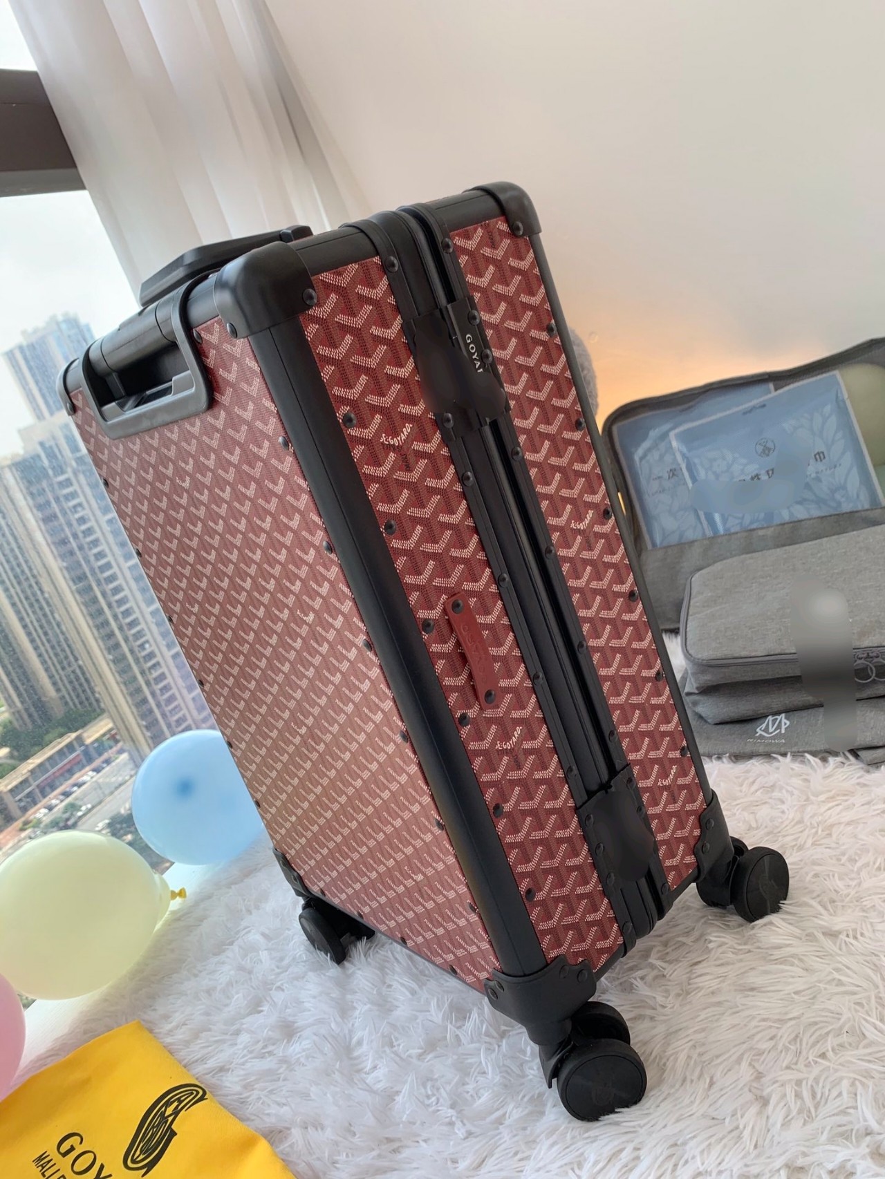 Goy suitcase/trolley case Another GROUP OF FASHION NEW FAVORITE, this RETRO FORM PULL BOX HAS ITS OWN UNIQUE KIND OF FASHION DRY STYLE, STRENGTH APPEARANCE LEVEL ALL ONLINE ?? DISK HIM! The signature printed pattern with an aluminum frame is both fashionable and durable. ? Place an order and get a dust-proof bag and straps for free! ??20 inches/carry-on suitcase ??24 inches/container