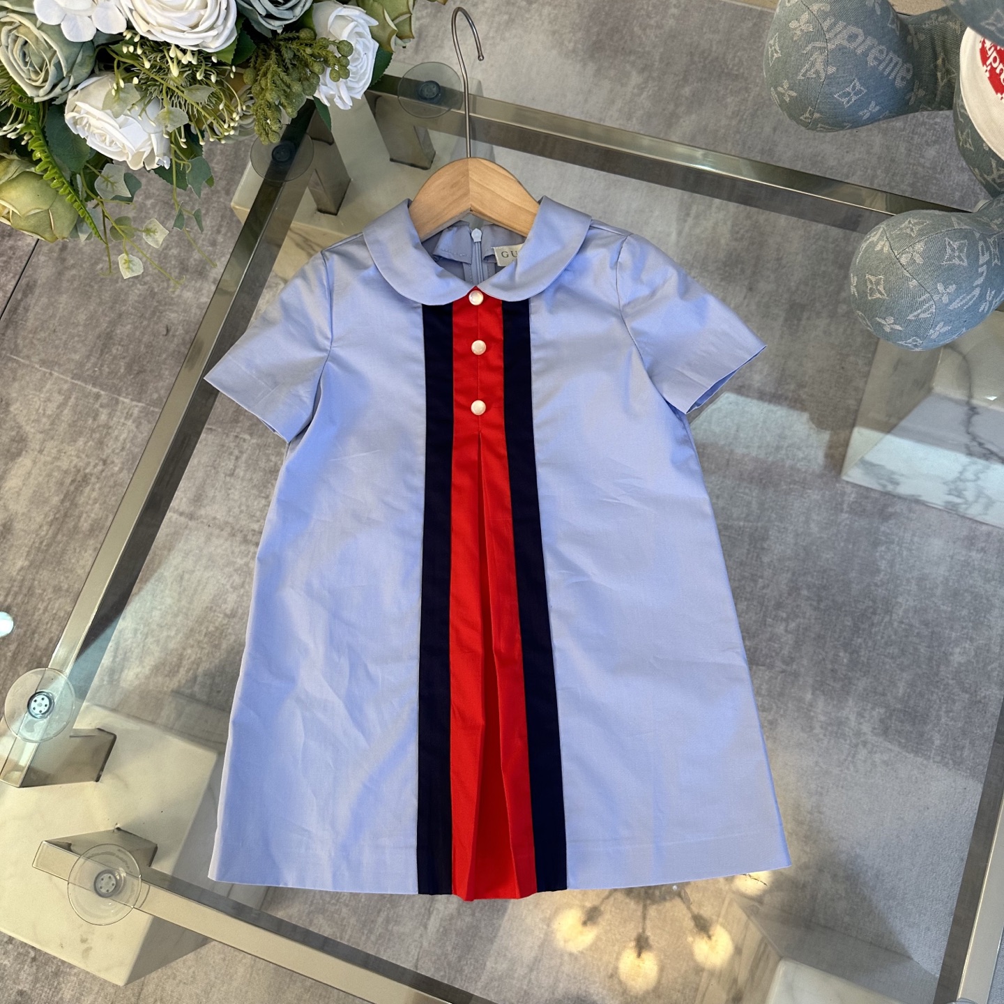 Gucci Gucci, high-end children's clothes, girls dress, joining together of two woven belt, waist tie-in pleated skirt pendulum, upper body comfortable, good-looking, code number: 100/110/120/130/140/150/160 cm