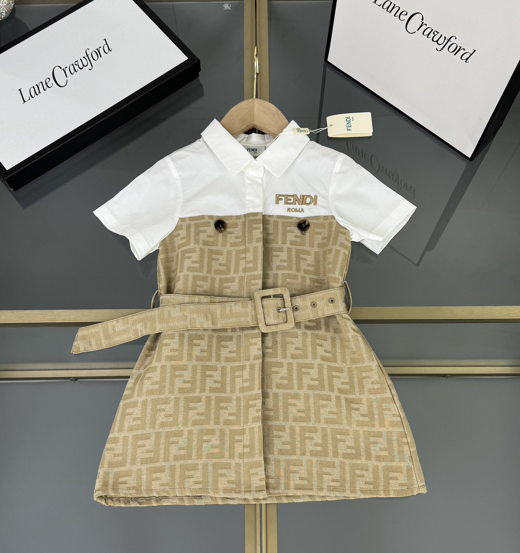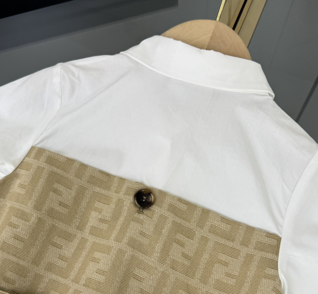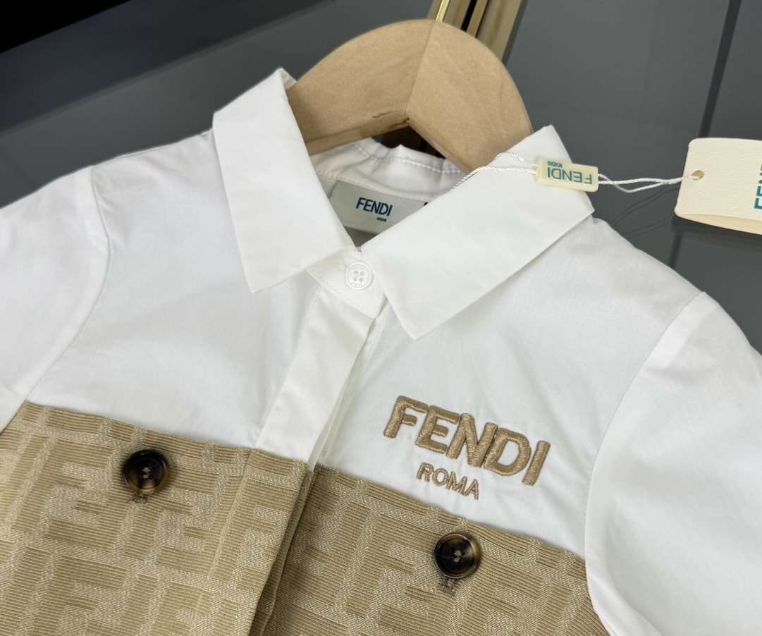 Fendi, high-end children's clothes, girls dress, small jacquard collar splicing dress, custom stitching FF full printed denim fabrics, upper body comfortable, good-looking, code number: 100/110/120/130/140/150 cm