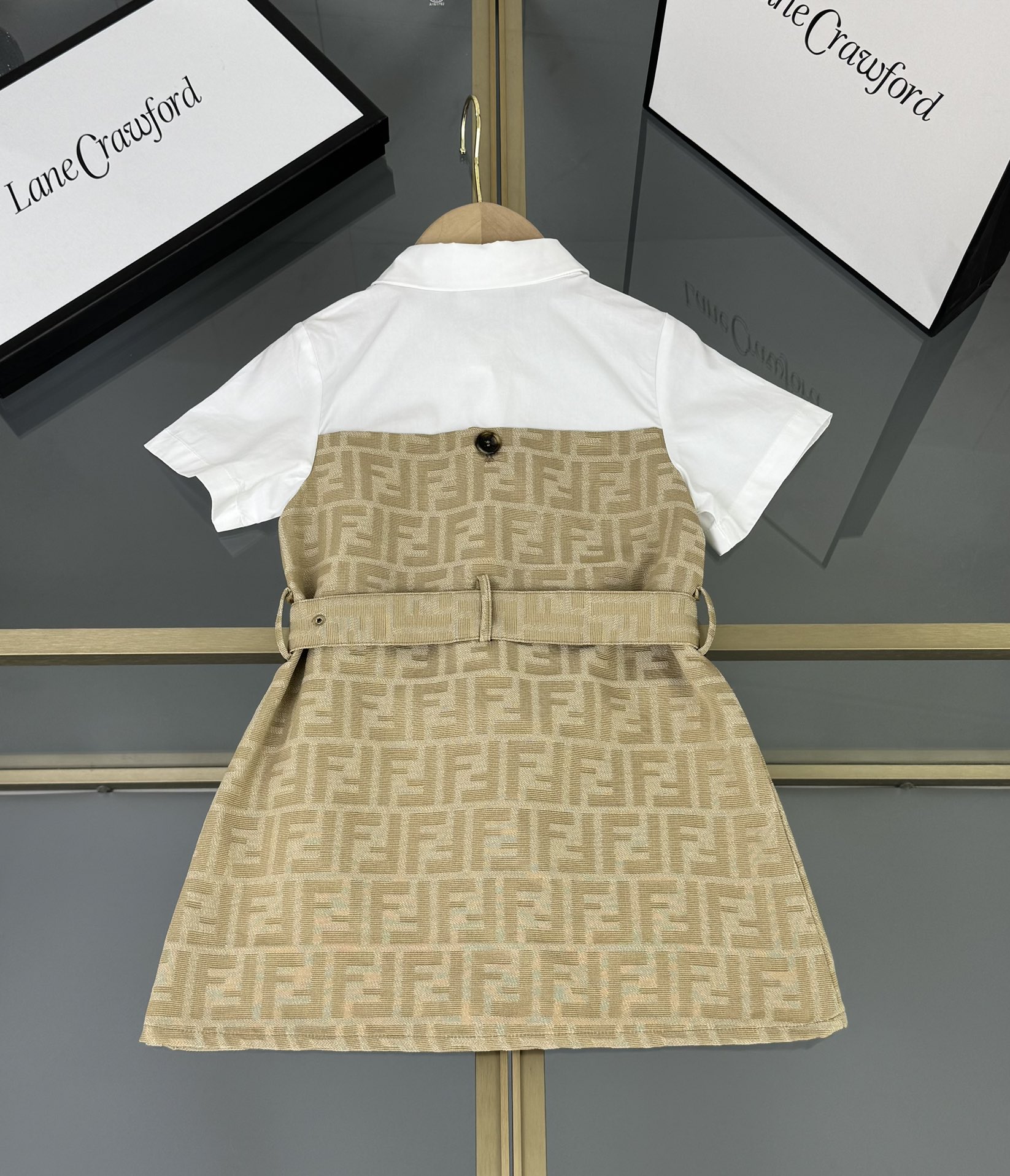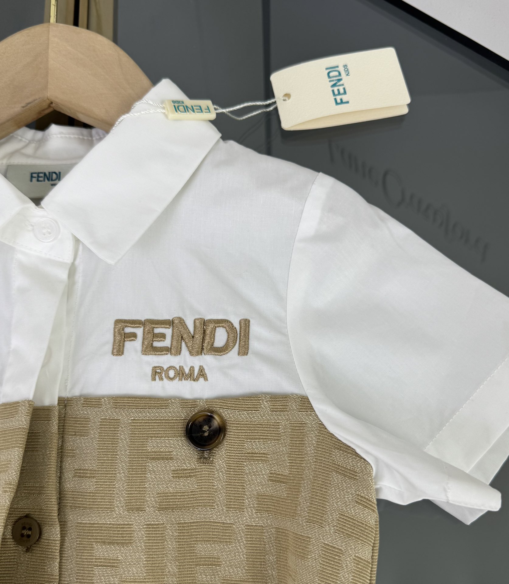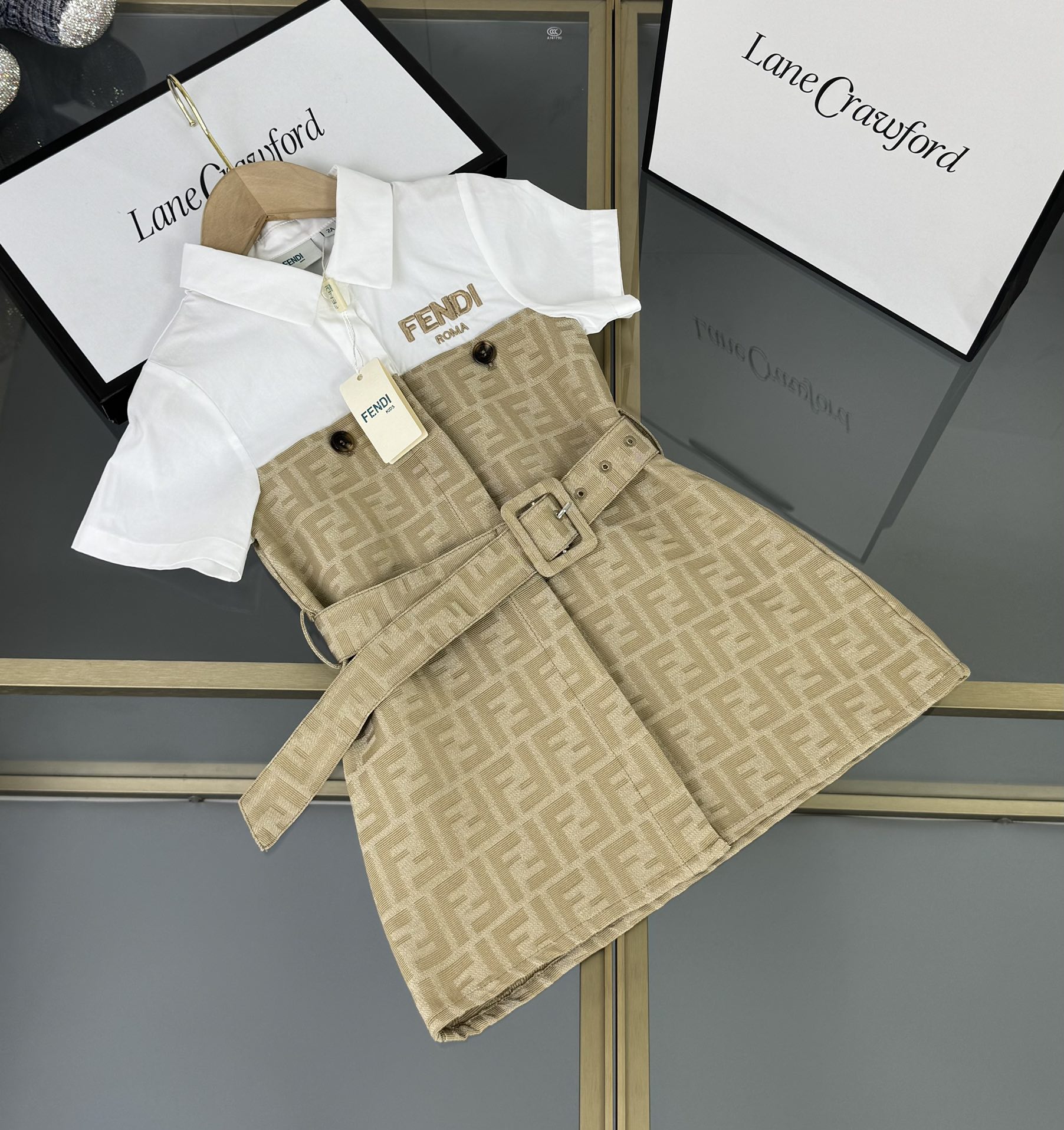 Fendi, high-end children's clothes, girls dress, small jacquard collar splicing dress, custom stitching FF full printed denim fabrics, upper body comfortable, good-looking, code number: 100/110/120/130/140/150 cm